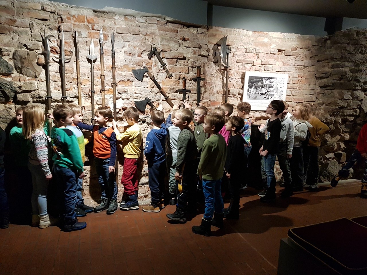 Pagrabā izveidotajā muzejā skolēni izpētīja ēkas senos mūrus, uzmērīja bruņucepuri, aptaustīja senos ieročus, iepazinās ar dažādu veidu svariem, kurus izmantoja tirgotāji preču svēršanai. Skolēni aktualizēja zināšanas par Latvijas dabas bagātībām, kurām bija liela nozīme tirdzniecībā ar citām valstīm.