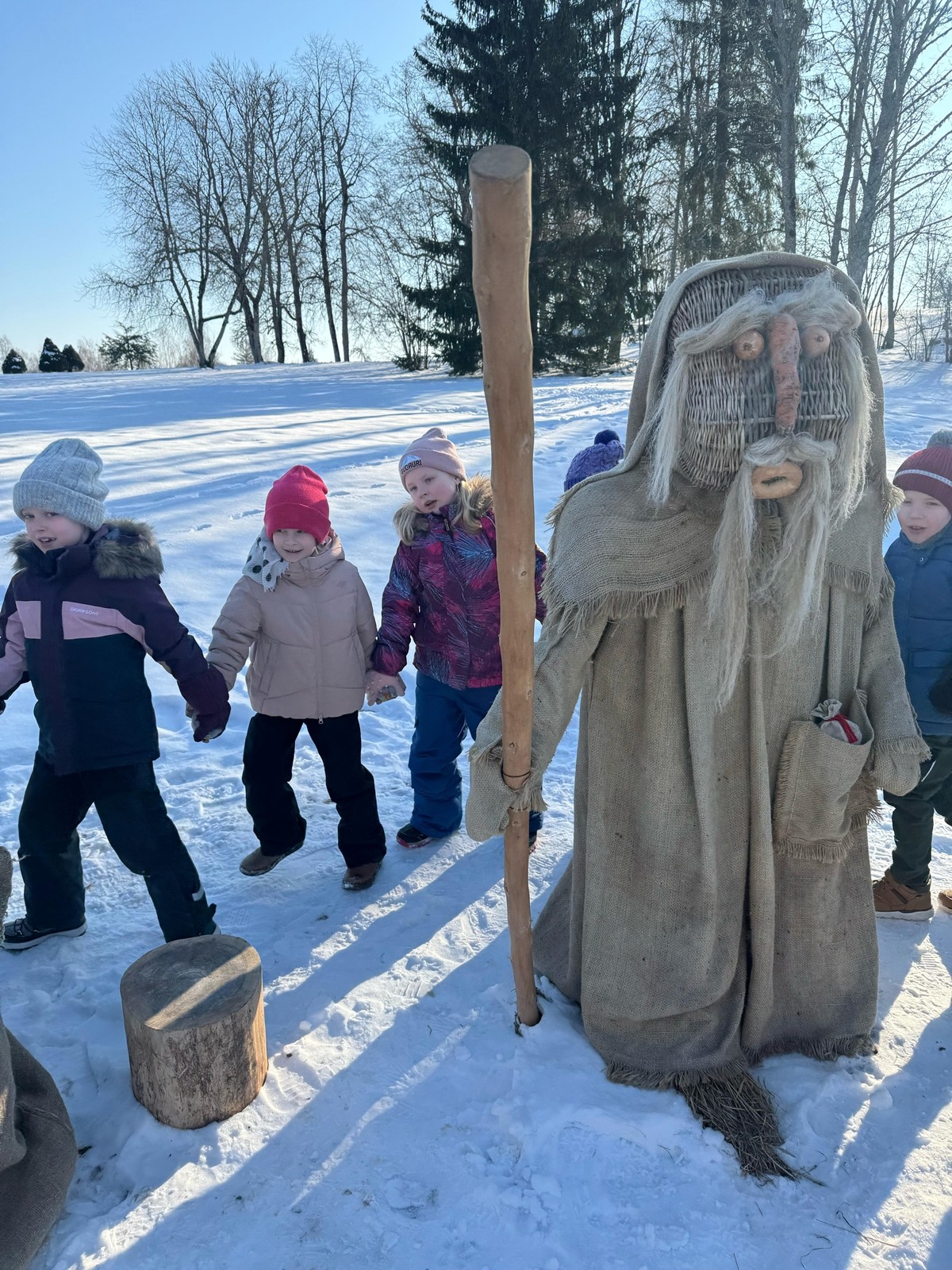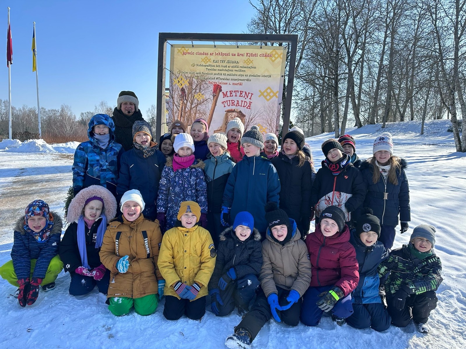Viens no Meteņdienas ticējumiem ir tāla ciemos braukšana šajā laikā – jo tālāk ciemojas, jo labāka raža gaidāma nākamajā vasarā un lielāka veiksme visu gadu. Tāpēc 1.c un 2.a klases skolēni 24.februārī devās mācību ekskursijā uz Turaidas muzejrezervātu. Izglītojošajās programmas “Meteņi Turaidā” laikā skolēni izzināja senās Meteņu tradīcijas un vēroja norises dabā. Skolēni iepazina maskošanās tradīcijas, spēlēja spēles, mācījās dziesmas un rotaļas, dzina kurmjus, piesauca veiksmi lieloties, satika pašu Meteni, Pelnāzi, budēļus un meklēja Laimes pogu.