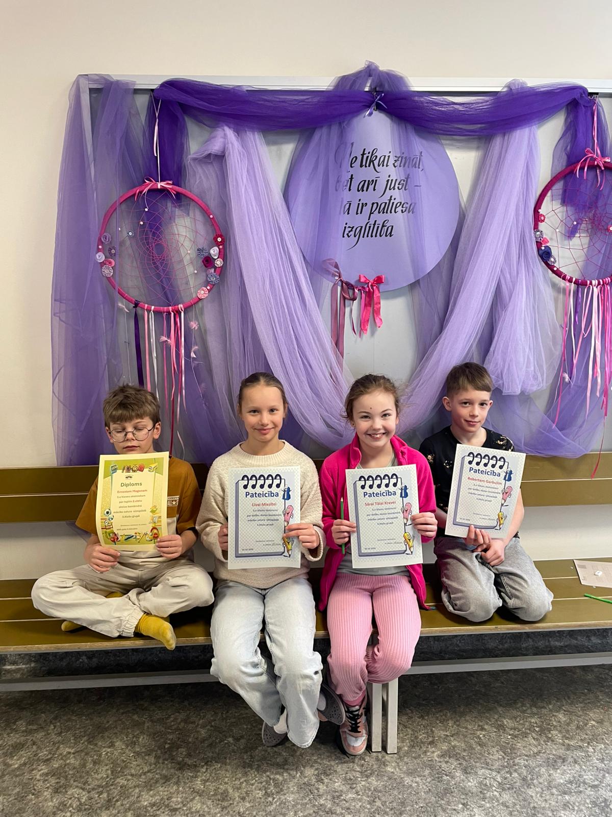 Sācies otrais mācību semestris ar dažādām ārpusstundu izglītojošām aktivitātēm. Šogad skolā rīkojām kombinētā mācību satura olimpiādi. Tās mērķis ir veicināt skolēnu daudzpusīgu attīstību, apvienojot zināšanas gan latviešu valodā, gan matemātikā. Gatavojoties šā gada 3.klašu monitoringa darbiem tekstpratībā un rēķinpratībā, skolēniem bija iespēja pārbaudīt savas prasmes pielietojot nestandarta uzdevumu veikšanā. Otro klašu grupā visaugstāko sniegumu 1.vietu ieguva 2.c klases skolniece Emīlija Kaparšmite. Trīs otrās vietas – Beatrisei Kolbergai 2.a, Evertam Krūmiņam 2.d un Jēkabam Lācim 2.e klase. Trešā vieta Beatrisei Kronbergai no 2.c klases.