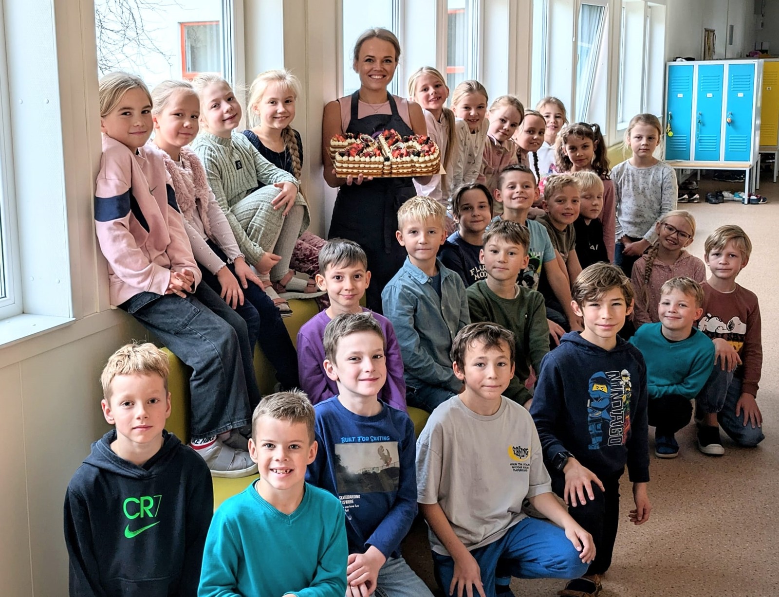 Kādā pēcpusdienā 2.b klases telpas piepildīja salda smarža un priecīgi smiekli – pie mums viesojās iedvesmojošā Kūku Kapteine! Viņa ieradās ar savu krāsaino priekšautu, lielu kasti, pilnu ar cepšanas piederumiem, un, protams, ar labu garastāvokli.