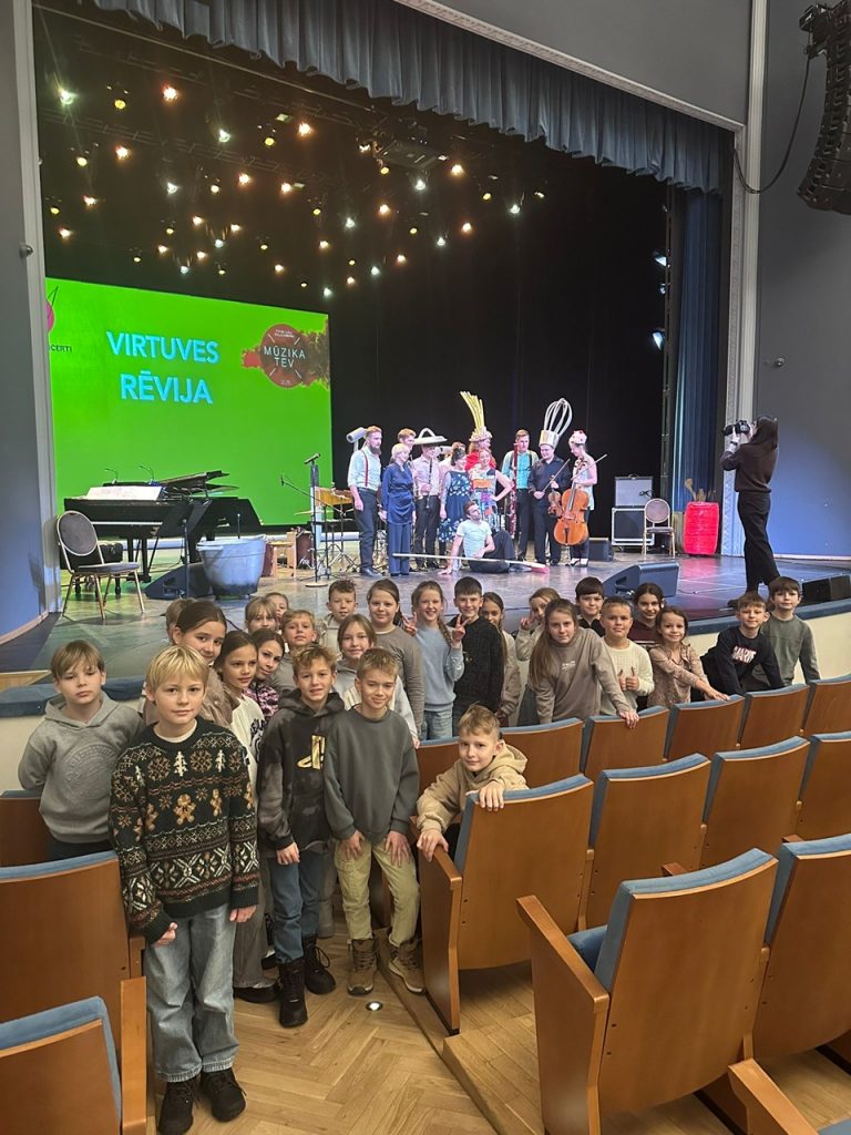 25.novembrī 2.c un 3.a klase devās uz VEF Kultūras pili, kur skatījās koncertlekciju “Virtuves rēvija”. Virtuves priekšmeti – Kastrolīte un Vāciņš, Slotas kāts un Trauklupatiņa izdzīvoja tādas pat kaislības kā cilvēki. Labākie LNSO mūziķi iejutās virtuves priekšmetu tēlos un izspēlēja Bohuslava Martinu, Belas Bartoka, Morisa Ravēla un Arama Hačaturjana skaņdarbus. To visu papildināja fantāziju rosinoši rekvizīti, košas videoprojekcijas un dejotāju duets. Skolēni iepazina dažādus mūzikas instrumentus un to skanējumu. Par neparasto izrādi bērni bija sajūsmā. Visiem ļoti, ļoti patika.