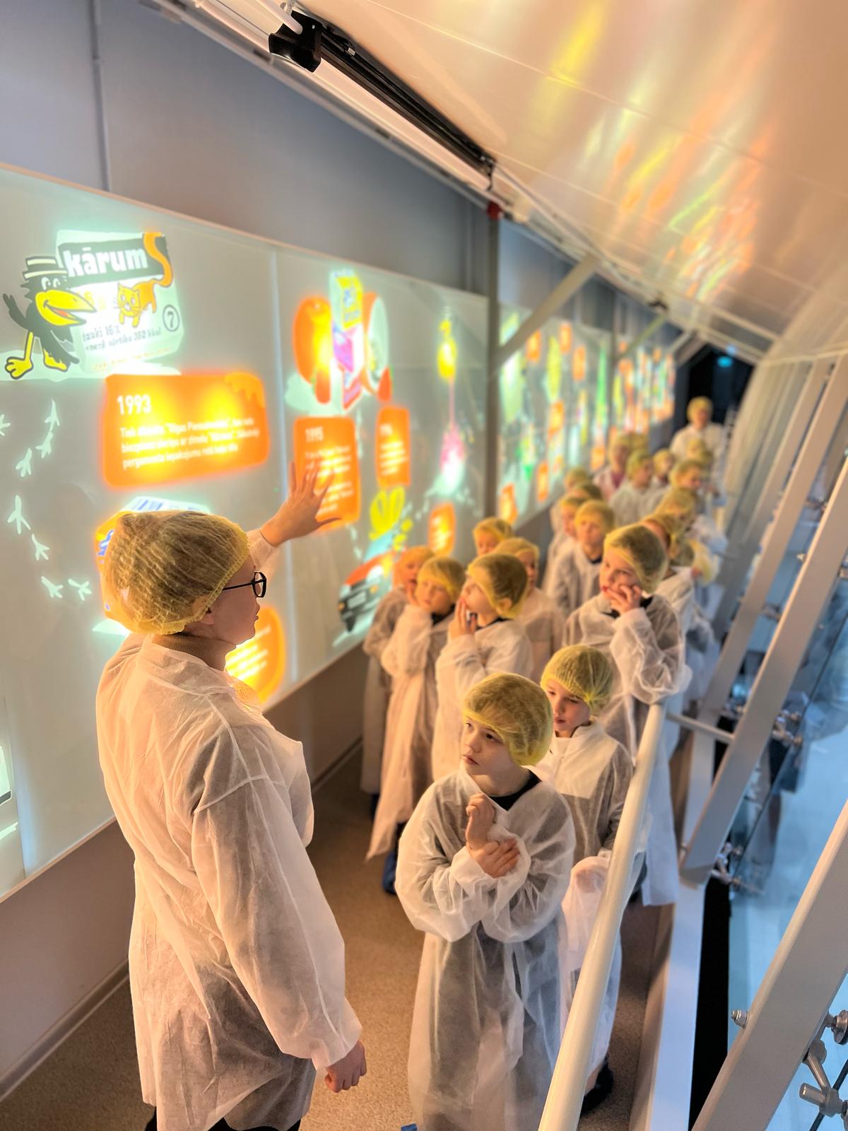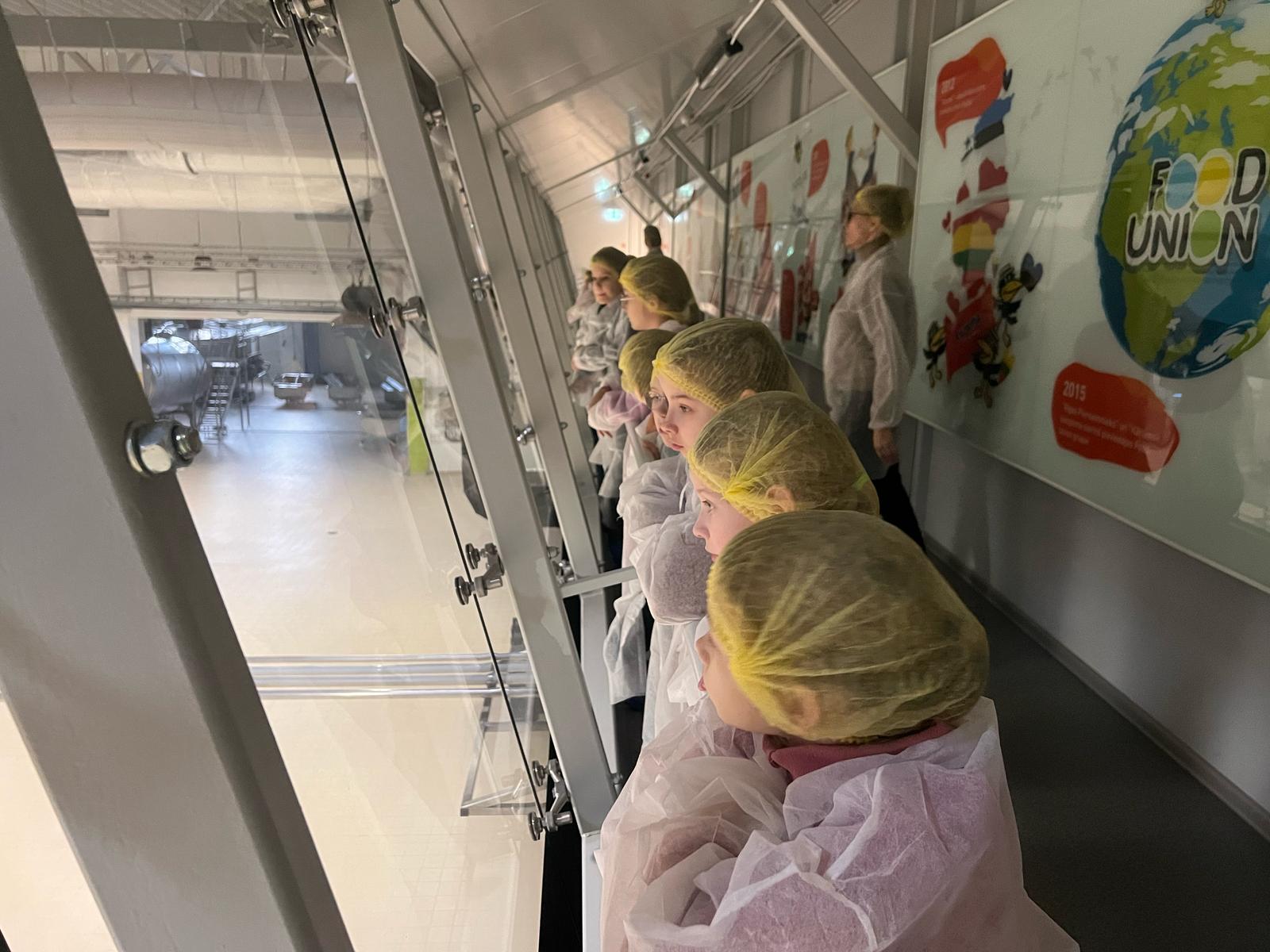 13. februārī 2.f klasei, bija ļoti interesanta un garšīga diena – devāmies ekskursijā uz Rīgas piena kombinātu! Tur mēs ielūkojāmies, kā top dažādi piena produkti, bet vislielāko interesi izraisīja mūsu visiem tik mīļais biezpiena sieriņš “Kārums”. Redzējām, kā tas tiek gatavots un iepakots, un uzzinājām daudz jauna par piena produktu ražošanu.