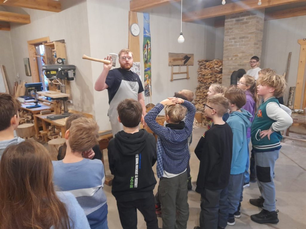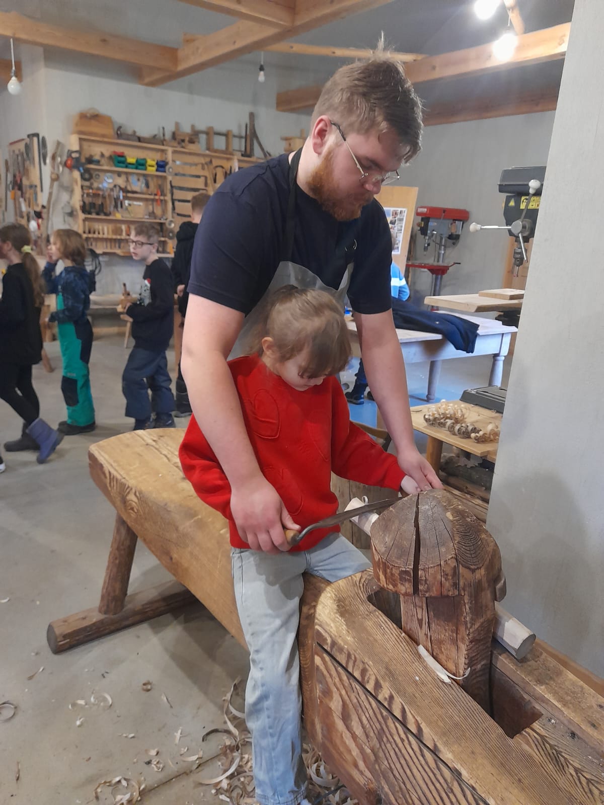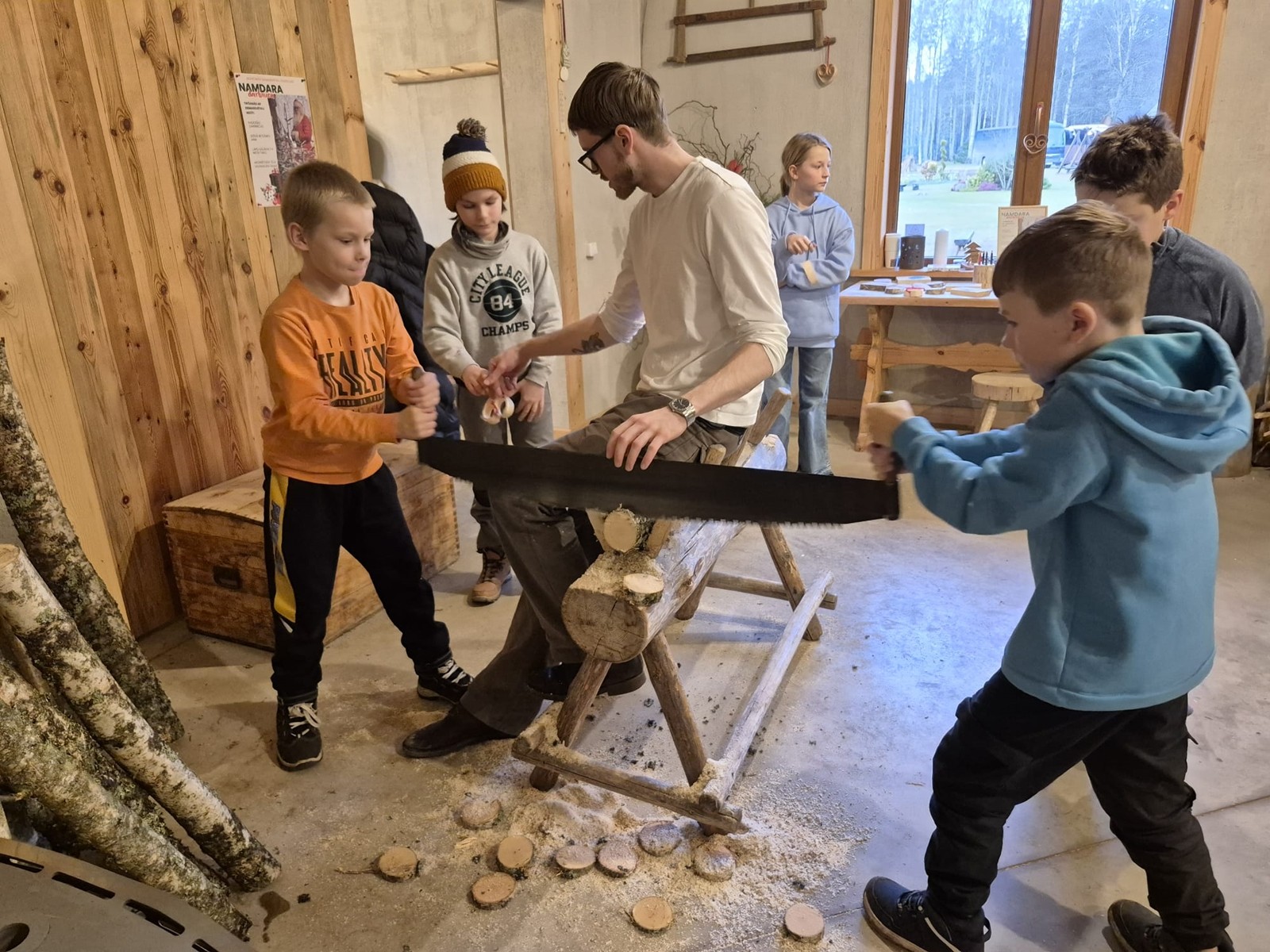Latvijas Skolas somas izzinoši radoša nodarbība “Cilvēks, koks, kultūrvērtība” Namdara darbnīcā.