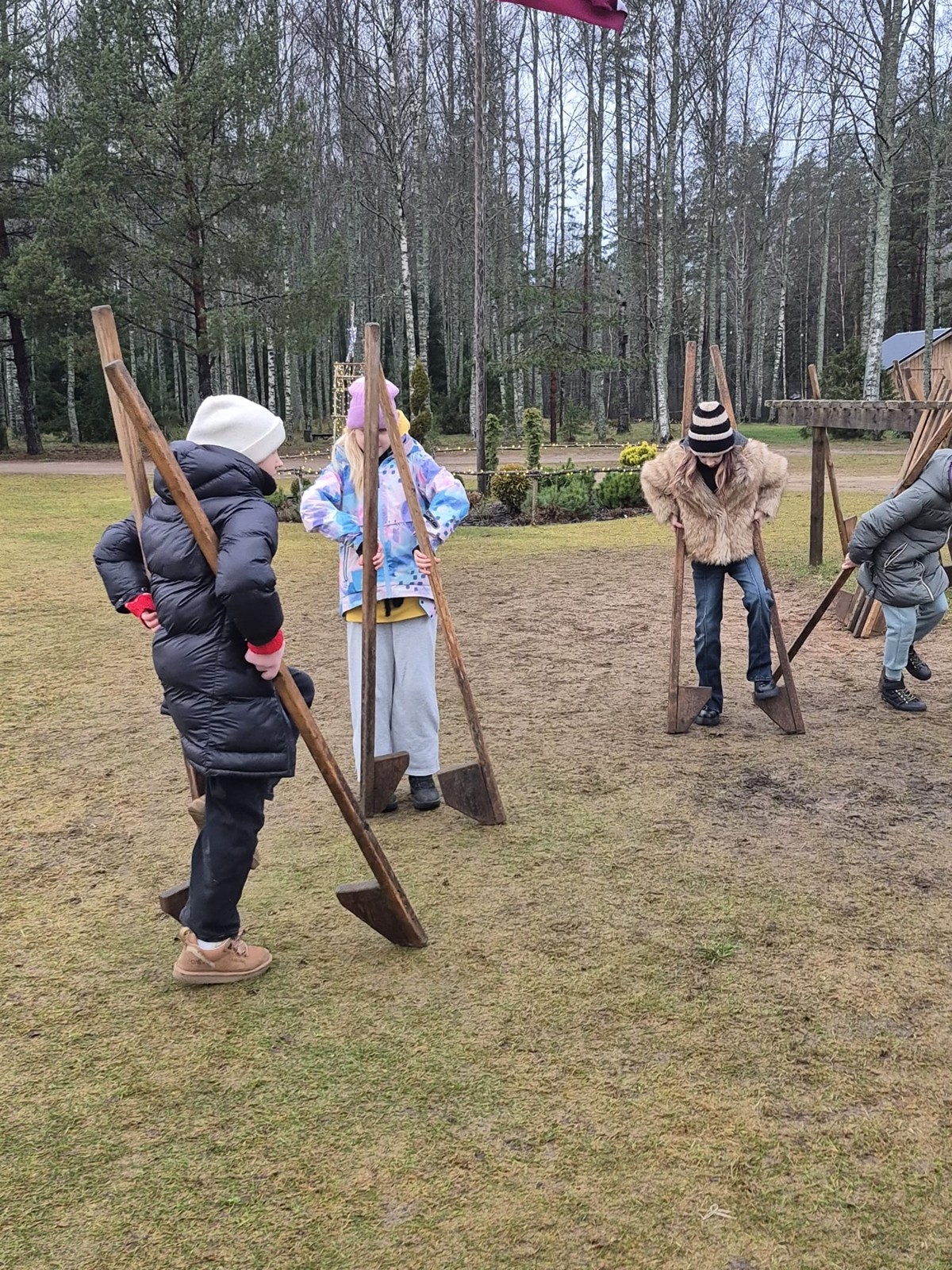 Izzinoši radošās nodarbības “Cilvēks, koks, kultūrvērtība” laikā katrs skolēns varēja izmēģināt koka zāģēšanu ar divroci, nomizot baļķi ar slīmestu, izgatavot rotājumu no zāģu skaidām un veidot saulītes no niedrēm. Nodarbības noslēgumā Ugunskura namiņā skolēni omulīgi sildījās pie ugunskura, baudīja veselīgo augļu tēju un iestiprinājās ar līdzi paņemtajām pusdienām. Teritorijā darbojās Koka lietu veikaliņš, kurā skolēni iegādājās amatnieku darbus un suvenīrus, lai iepriecinātu mājiniekus.