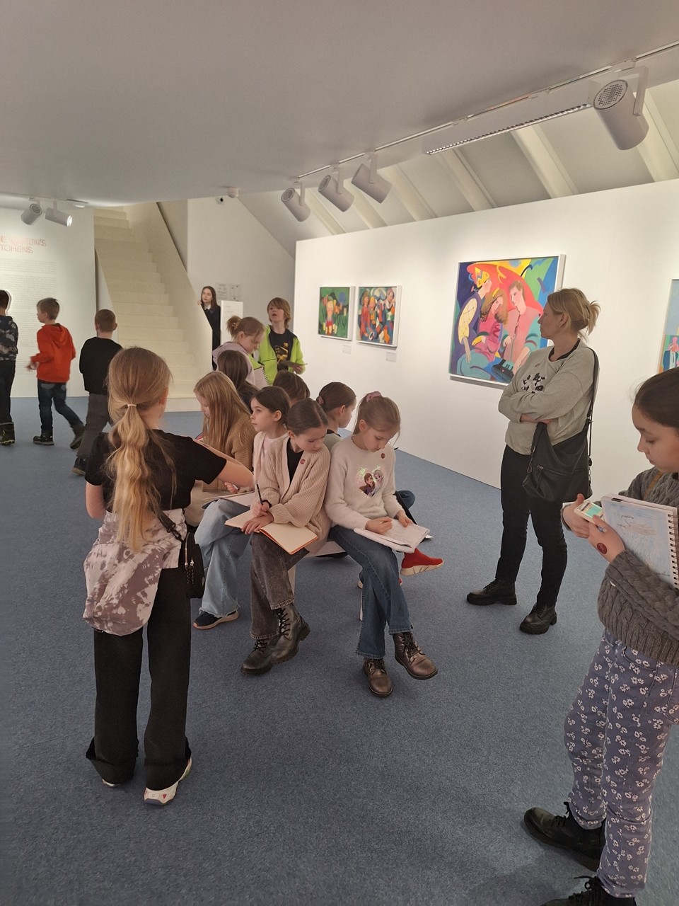 Muzeja apmeklējuma laikā bērni bija aicināti skicēt sev nozīmīgākos darbus, par kuriem turpināsim runāt vizuālās mākslas stundās.