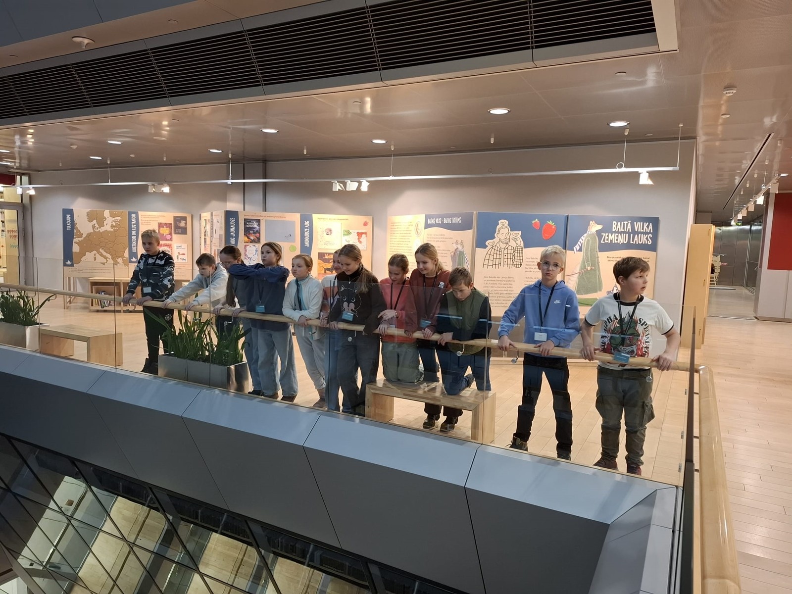 Pēc poligona “Getliņi” nākamais pieturas punkts bija Latvijas Nacionālā bibliotēka, kas ir viena no neparastākajām ēkām Latvijā. Atrodoties bibliotēkā, ir jāievēro noteikumi. Ekskursija par bibliotēku bija patiešām aizraujoša – tik daudz redzēt un uzzināt! No bibliotēkas 11. un 12.stāva skata laukumiem varēja pārredzēt visu Rīgu, uzzināt par bibliotēkas galvenās ēkas arhitekta Gunāra Birkerta devumu. Jaunieši uzzināja, ka bibliotēkas 7.stāvā ir Bērnu literatūras centrs. Apbrīnas vērta bija milzīgā grāmatu siena, kas ir vairāku stāvu augstumā. Bija iespēja redzēt Dainu skapi ar savām daudzajām atvilktnītēm, kurās sakārtotas mazas lapiņas ar latviešu tautasdziesmām.