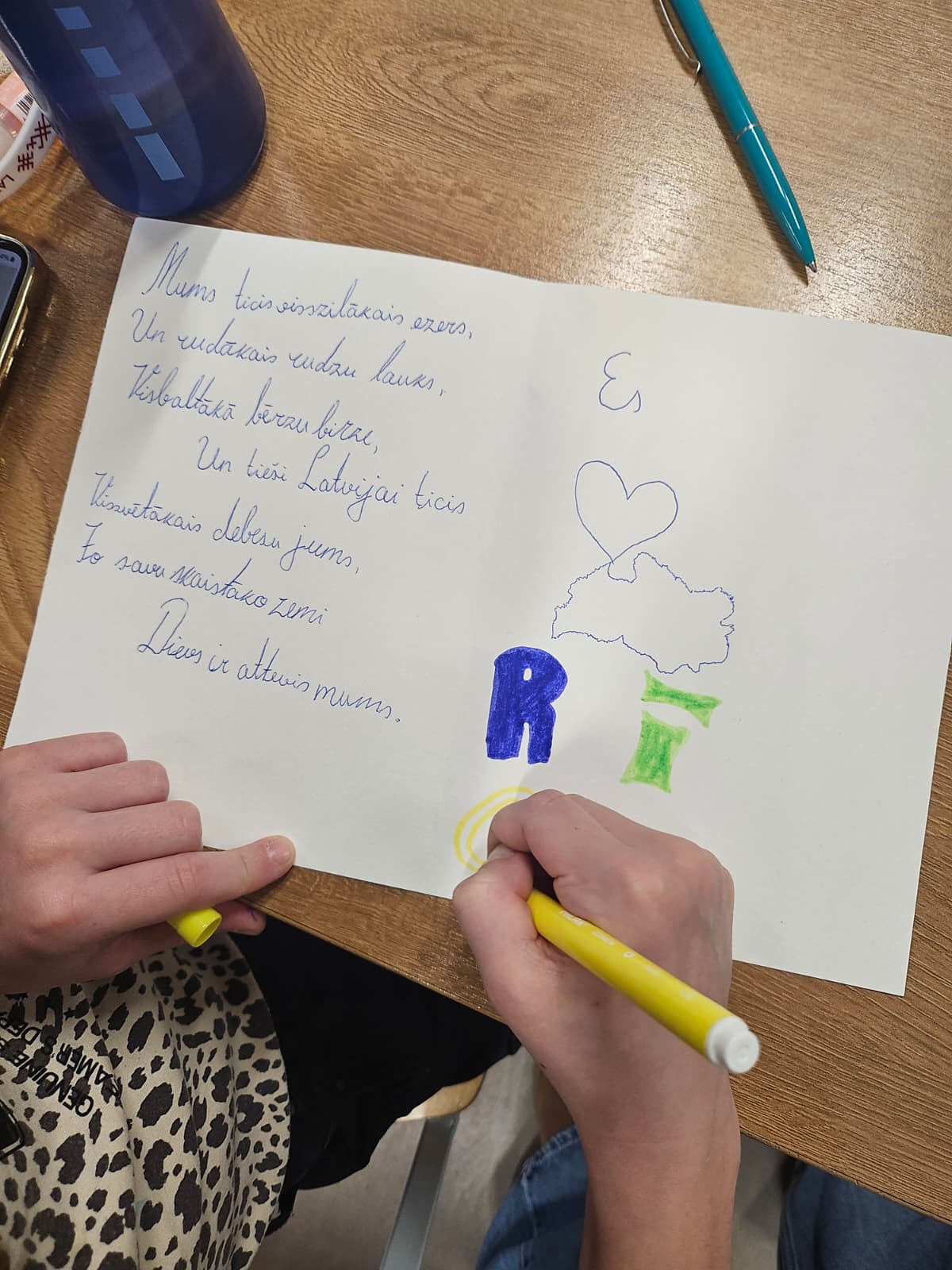 Nodarbības noslēgumā skolēniem bija divas aktivitātes. Pirmkārt, skolēni veidoja kartiņas Latvijas armijas veterāniem, lai veterāni justos novērtēti un godināti. Otrkārt, skolēni piedalījās viktorīnā, kurā varēja parādīt savas jauniegūtās zināšanas. Viktorīnas dalībnieki, kuri sniedza pareizas atbildes, saņēma patriotisku aprocīti ar Latvijas simboliku.