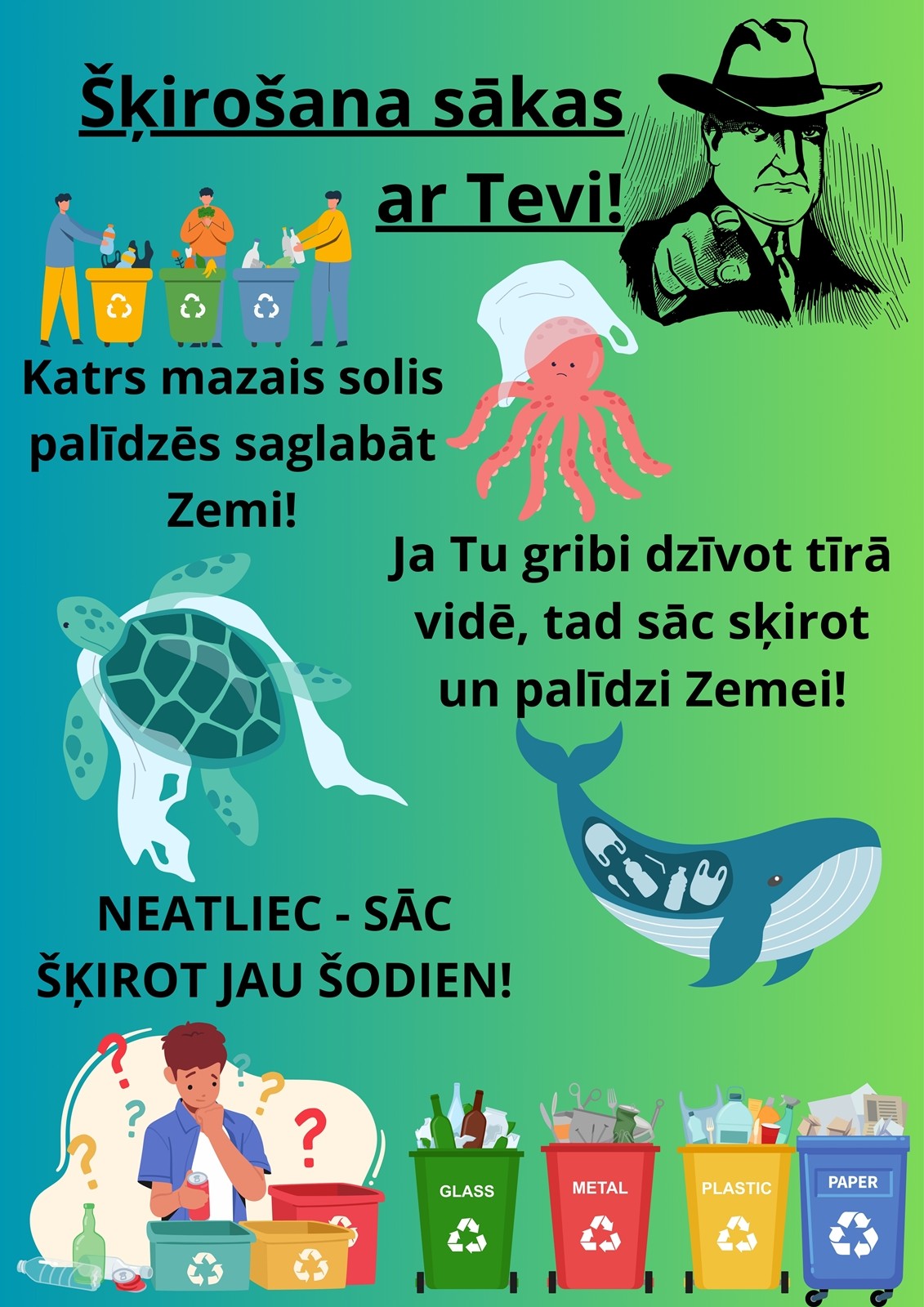 Skolēniem kopā bija jāveic divi uzdevumi- jāiesniedz apraksts un plakāts vai video par atkritumu šķirošananas nozīmīgumu. Skolēni plakātus veidoja, izmantojot mūsdienu tehnoloģijas, iemācījās jaunas prasmes, kā tiešsaistē, kopā ar klasesbiedriem var veidot un likt kopā plakātu www.canva.lv.