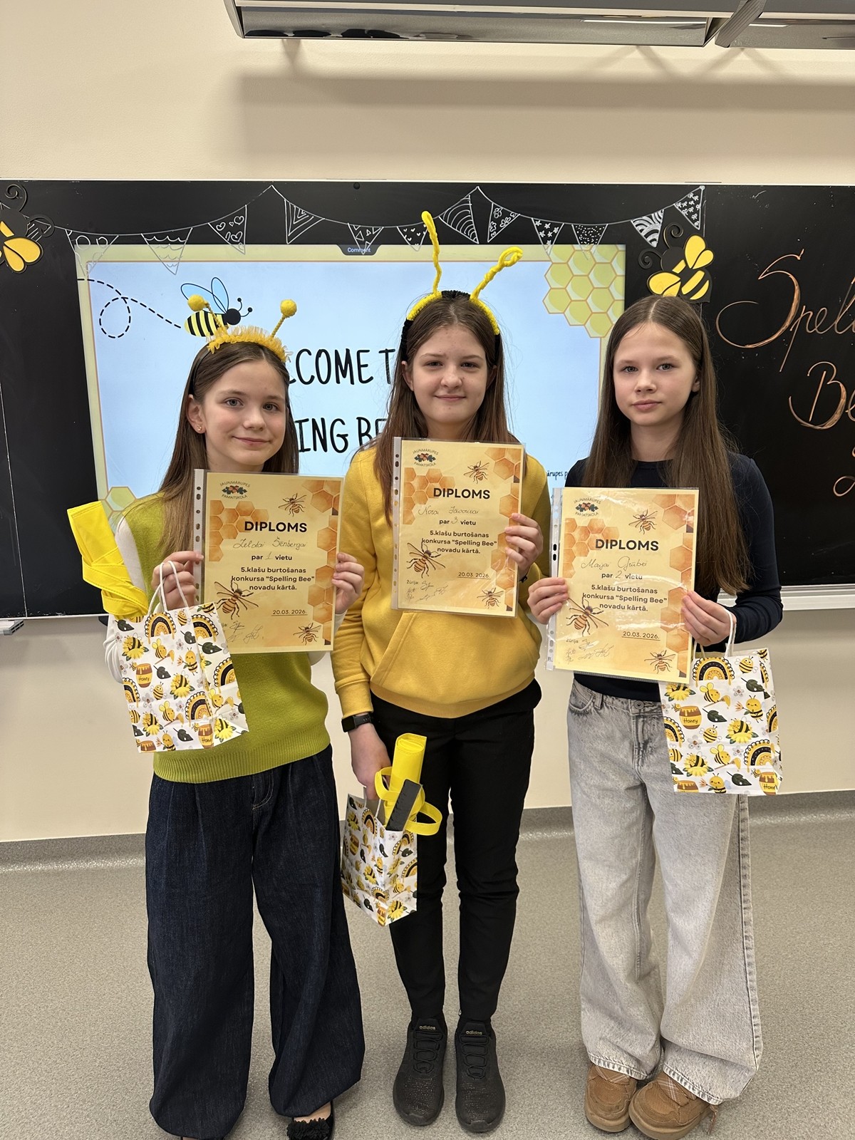 20. martā- Pasaules laimes dienā, mūsu skolā valdīja īpaši priecīga un aizrautīga gaisotne, jo norisinājās sadraudzības novadu – Mārupes, Salaspils, Ķekavas un Olaines – 5. klašu skolēnu angļu valodas burtošanas konkurss “Spelling Bee”.