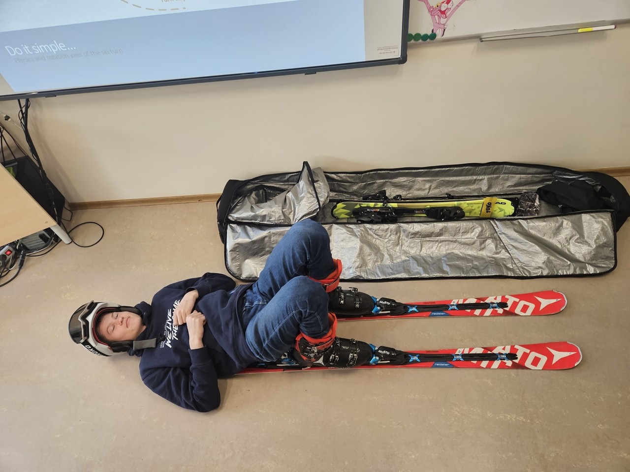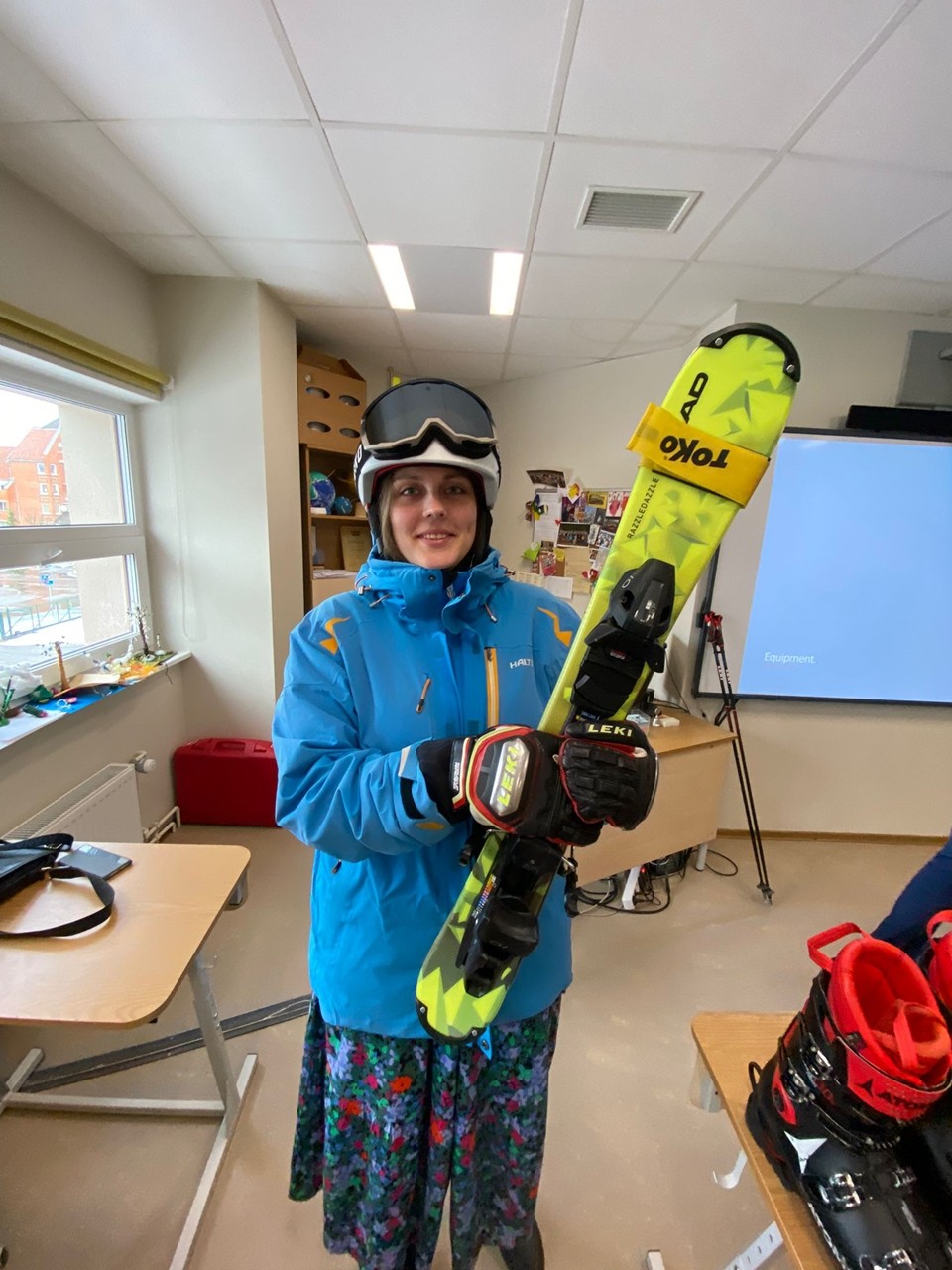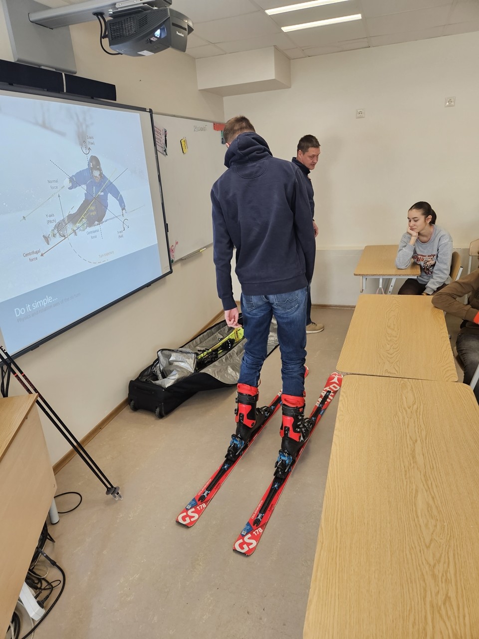 Klausoties stāstījumu mēs uzzinājām daudz dažādu lietu par ekipējumu, kalniem, slēpju veidiem, darba dienu uzbūvi un to, kādi pienākumi ir slēpošanas instruktoram. Olafam bija iespēja izmēģināt, cik izturīgi ir slēpju stiprinājumi. Skolotājai pielaikot slēpošanas apģērbu un ķiveri.