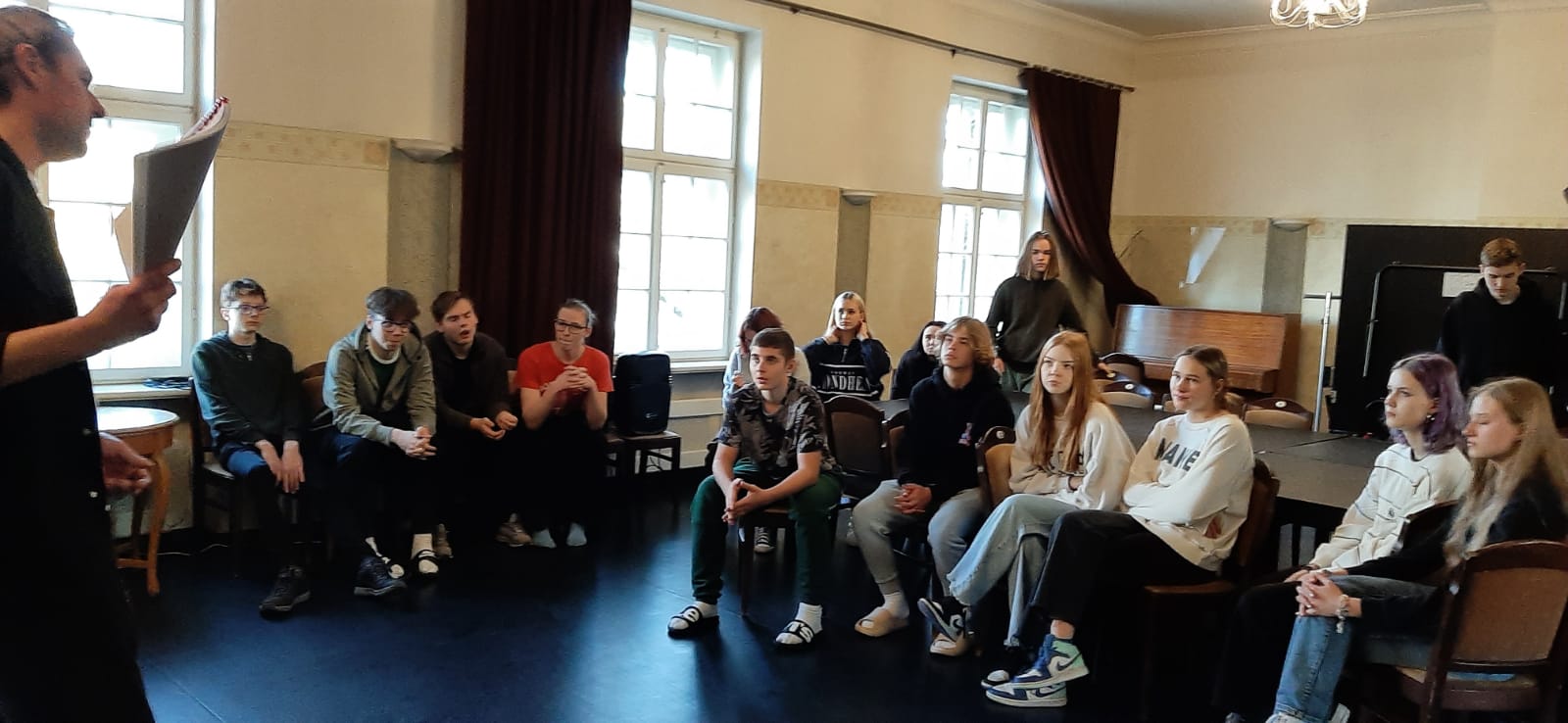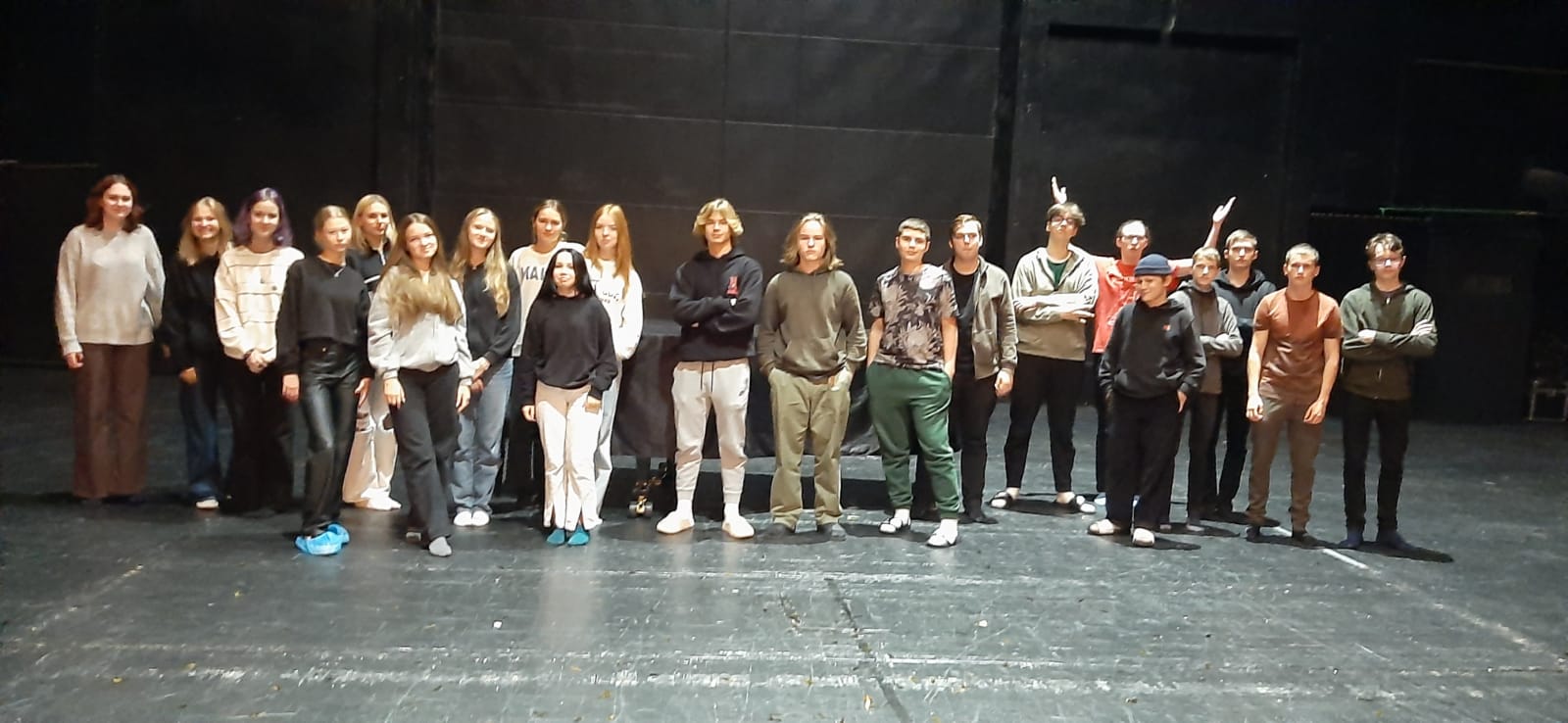 Otrais piedzīvojums bija ekskursija par Nacionālo teātri, ko piedāvā programma “Skolas soma”. Ekskursiju vadīja Nacionālā teātra aktieris Ivars Kļavinskis. Mēs izstaigājām dažādas teātra telpas. Bijām telpā, kurā top izrādēm nepieciešamās butaforijas. Bijām darbnīcā, kurā gatavo dekorācijas, rekvizītus. Bijām vienā no mēģinājumu telpām, uzzinājām, cik ilgā laikā top izrāde, kā norit pirmie mēģinājumi, kā aktieri gatavojas izrādēm, kāds izskatās lugas scenārijs. Grimmētavā uzzinājām, cik dārgas ir aktieru parūkas, kā notiek grimmēšanas process. Tā ir telpa, kura aktieri var pārvērst līdz nepazīšanai. Pabijām arī telpā zem skatuves, cik sarežģīta ir skatuves uzbūve un mehānismi, kas to darbina! Jaunajā zālē mēs uzzinājām, cik ātri aktierim jāspēj pārģērbties. Un, protams, visi uzkāpām uz lielās Nacionālā teātra skatuves Lielajā zālē.
