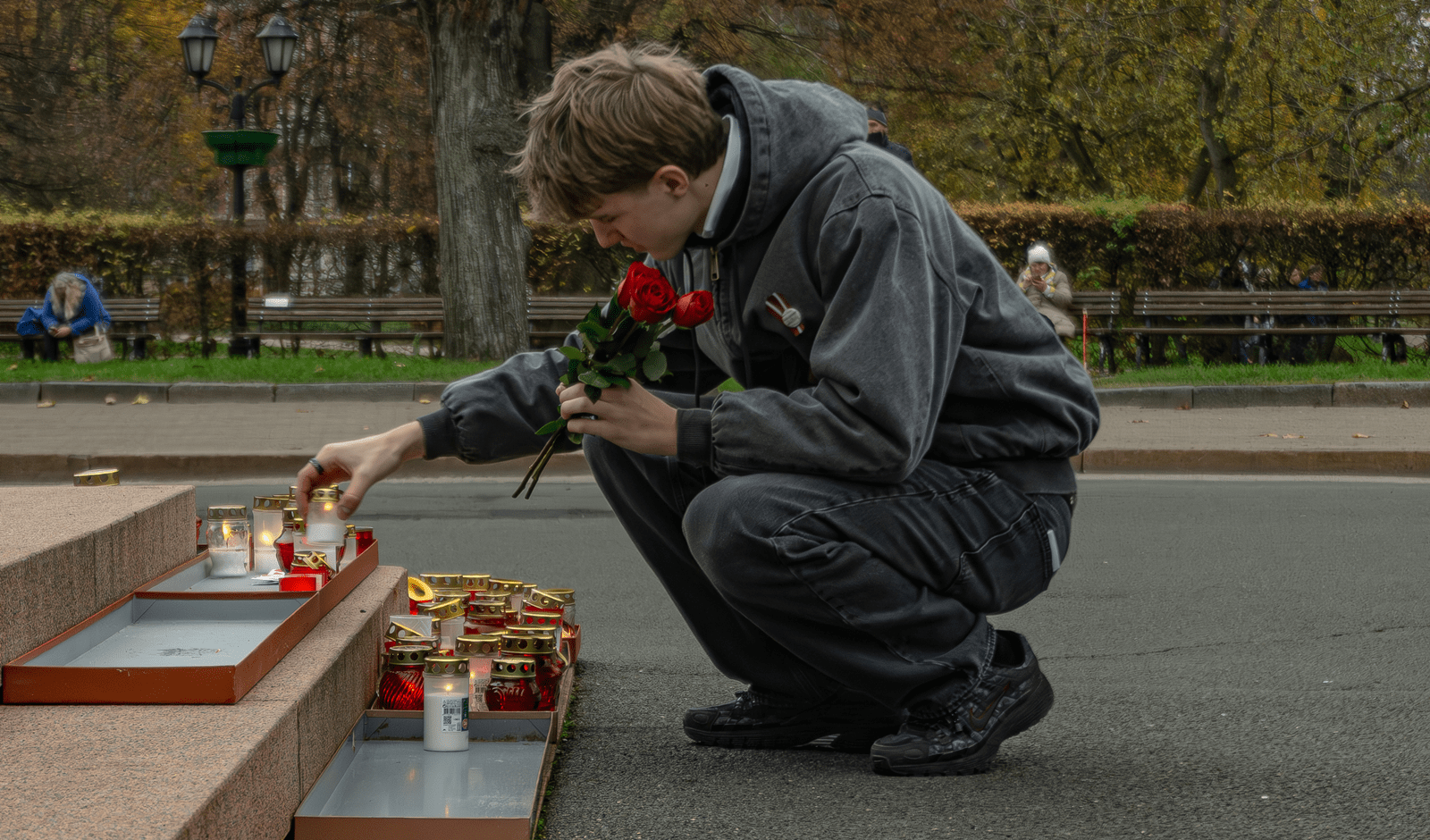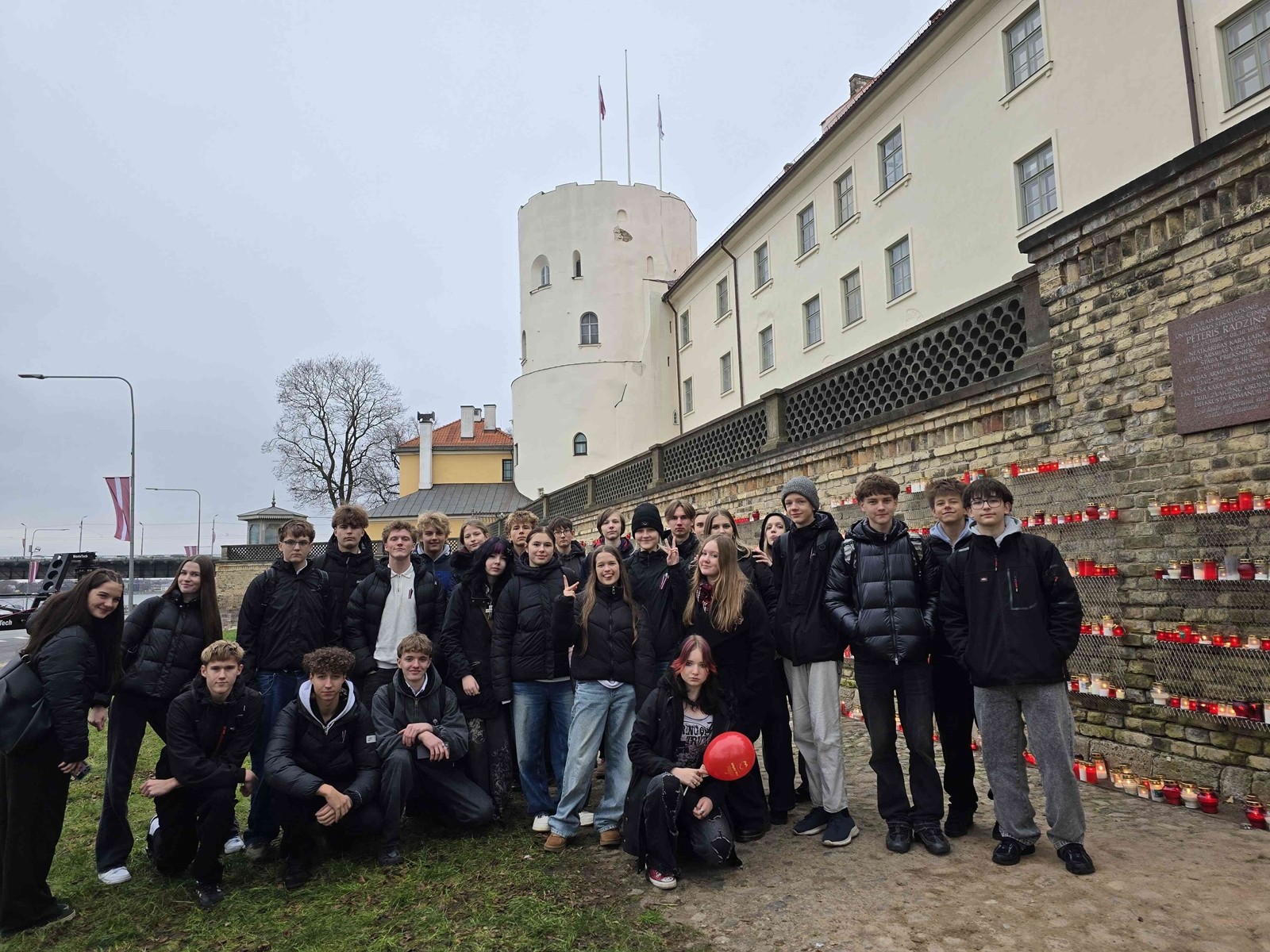 Ekskursijas nobeigumā klase novietoja savas svecītes pie Rīgas pils mūra, pieminot kritušos karavīrus un domājot par gaišu Latvijas nākotni.