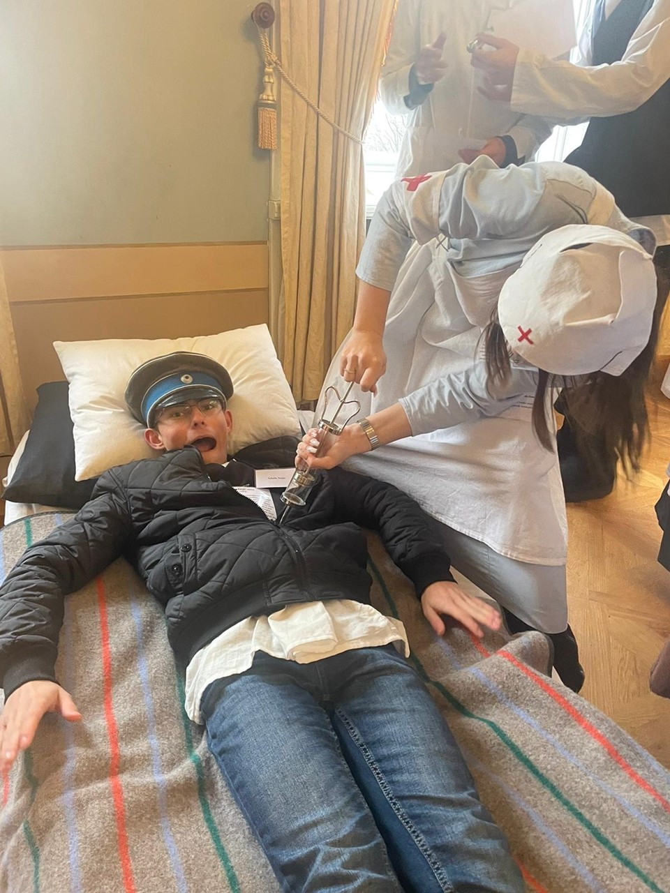 Skolēni pārģērbās, iejūtās citā laikā, kādas reālas vēsturiskas personas tēlā un piedzīvoja simtgadīgus notikumus, piedaloties īstenībai tuvinātās aktivitātēs, Baltijas landesvēra 1. lazaretē, Durbes pilī.