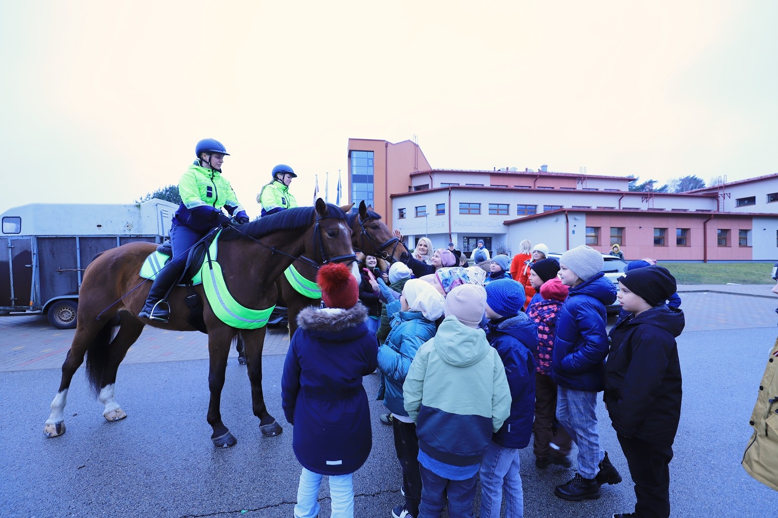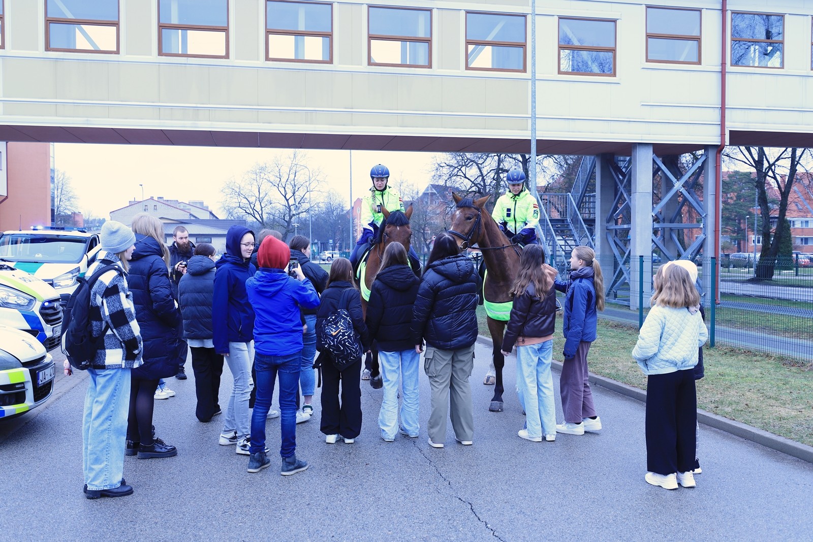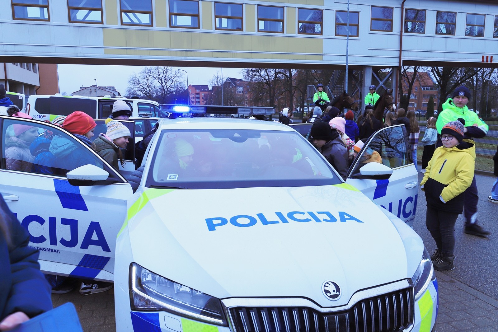 Savukārt 31.martā, sadarbībā ar Valsts policiju un Mārupes pašvaldības policiju, skolēniem bija iespēja gan apskatīt, gan aptaustīt policijas transportu. Skolēni klātienē iepazina dienesta zirgus, suņus, kinologus un policistus, kuriem uzdeva dažādus jautājumus un uzzināja profesionālajā pieredzē gūtos atgadījumus.