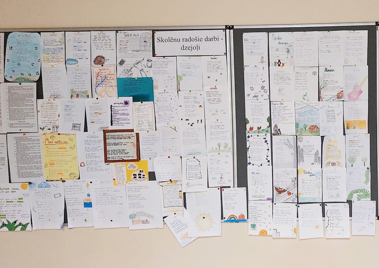Ar šādiem vārdiem šogad tika pieteikti dzejas dienu “Dzeja elpo” pasākumi visā Latvijā. Arī mūsu skolas skolēni tradicionāli atzīmēja dzejas dienas, radot savus dzejoļus, un labākie no tiem nu rotā vienu no skolas ziņojumu dēļiem!