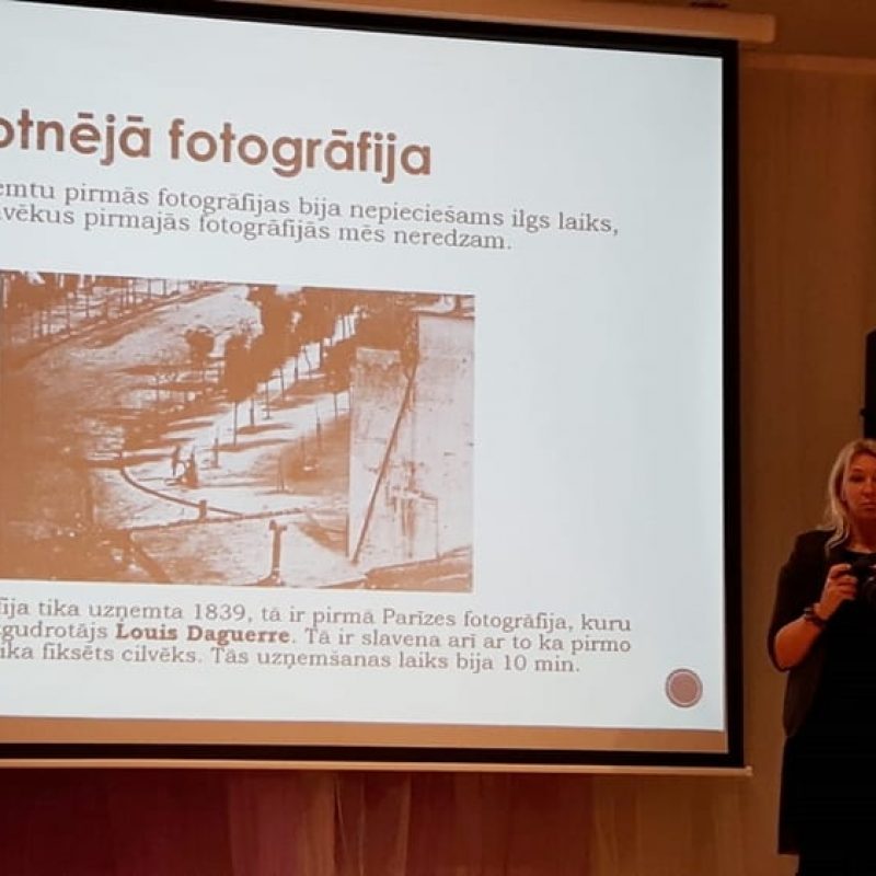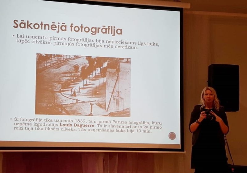 Fotogrāfe iepazīstināja ar sevi, pastāstīja sīkāk par sava darba ikdienu, parādīja kā izskatās vieta, kur lielākoties notiek fotografēšana – studija, iepazīstināja ar savas mājaslapas izskatu interneta vidē. Bērniem bija iespēja apskatīt fotogrāfa ikdienas darba aprīkojumu, un uzzināt par iespējām, kā to izmantot un kāpēc tas ir nepieciešams fotogrāfa ikdienas darbā. Fotogrāfe pastāstīja par gaismas nozīmi fotografējot un kāpēc fotogrāfa profesijas pārstāvim ir jāzina kādu gaismu attiecīgā fotografēšanas brīdī labāk izmantot, kāpēc ir vajadzīgas zibspuldzes. Skolēniem bija iespēja uzzināt kādos dažādos veidos var izmantot Photoshop programmu fotogrāfiju apstrādei. Fotogrāfe Parādīja vienkāršas darbības, ko skolēni paši var lietot izmantojot šo programmu.