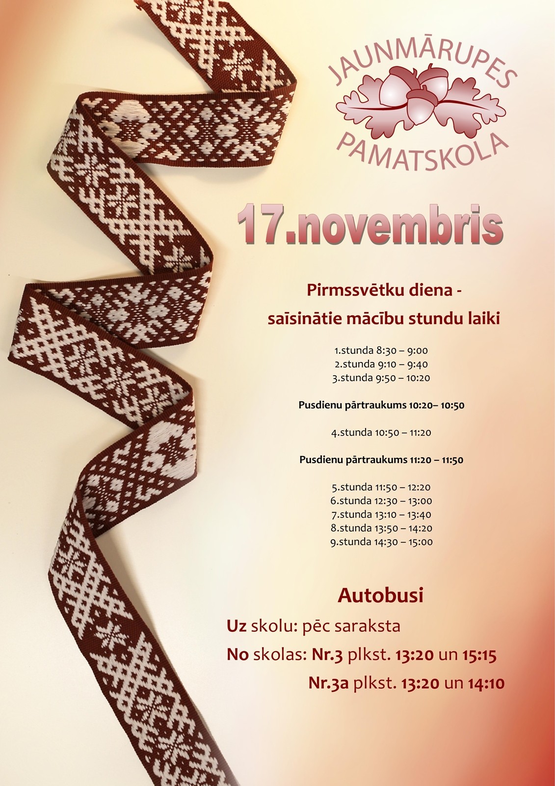 Saīsinātā pirmssvētku diena Mācību stundu ilgums – 30min. Datums Nov 17 2021 Expired! Kategorijas Mācību process