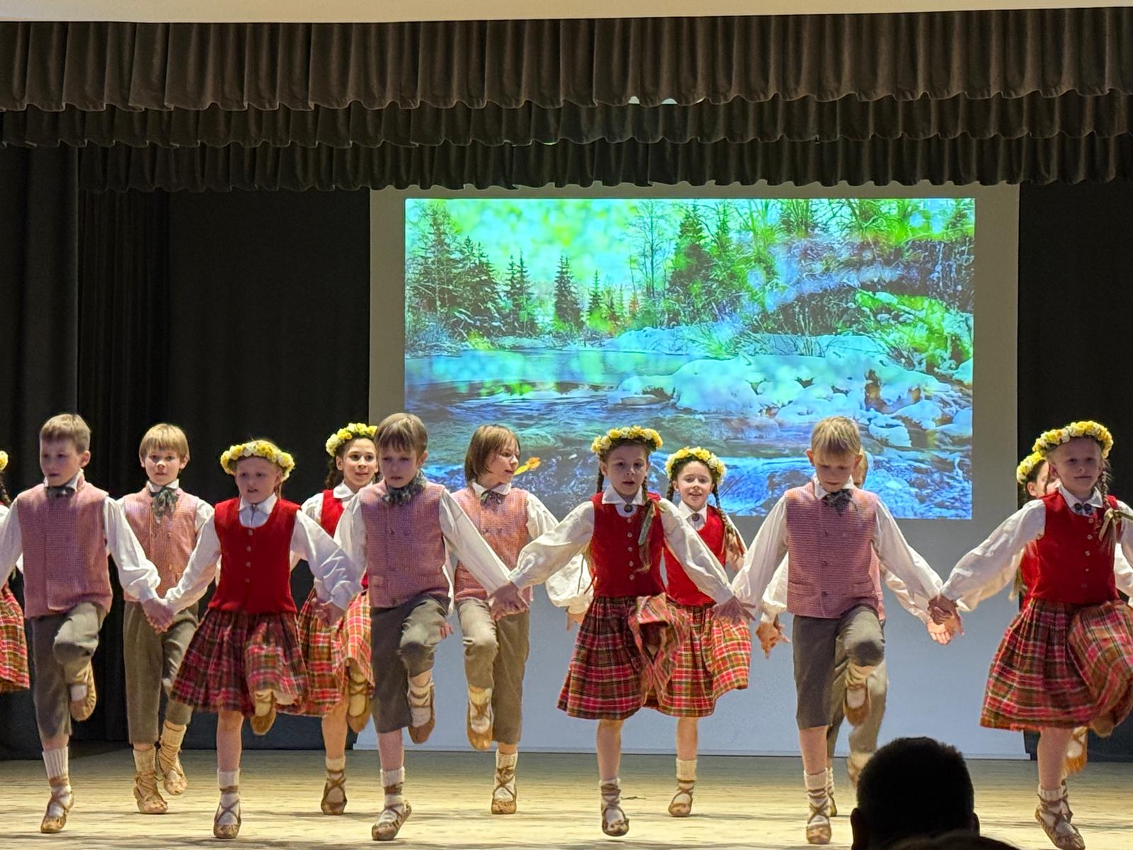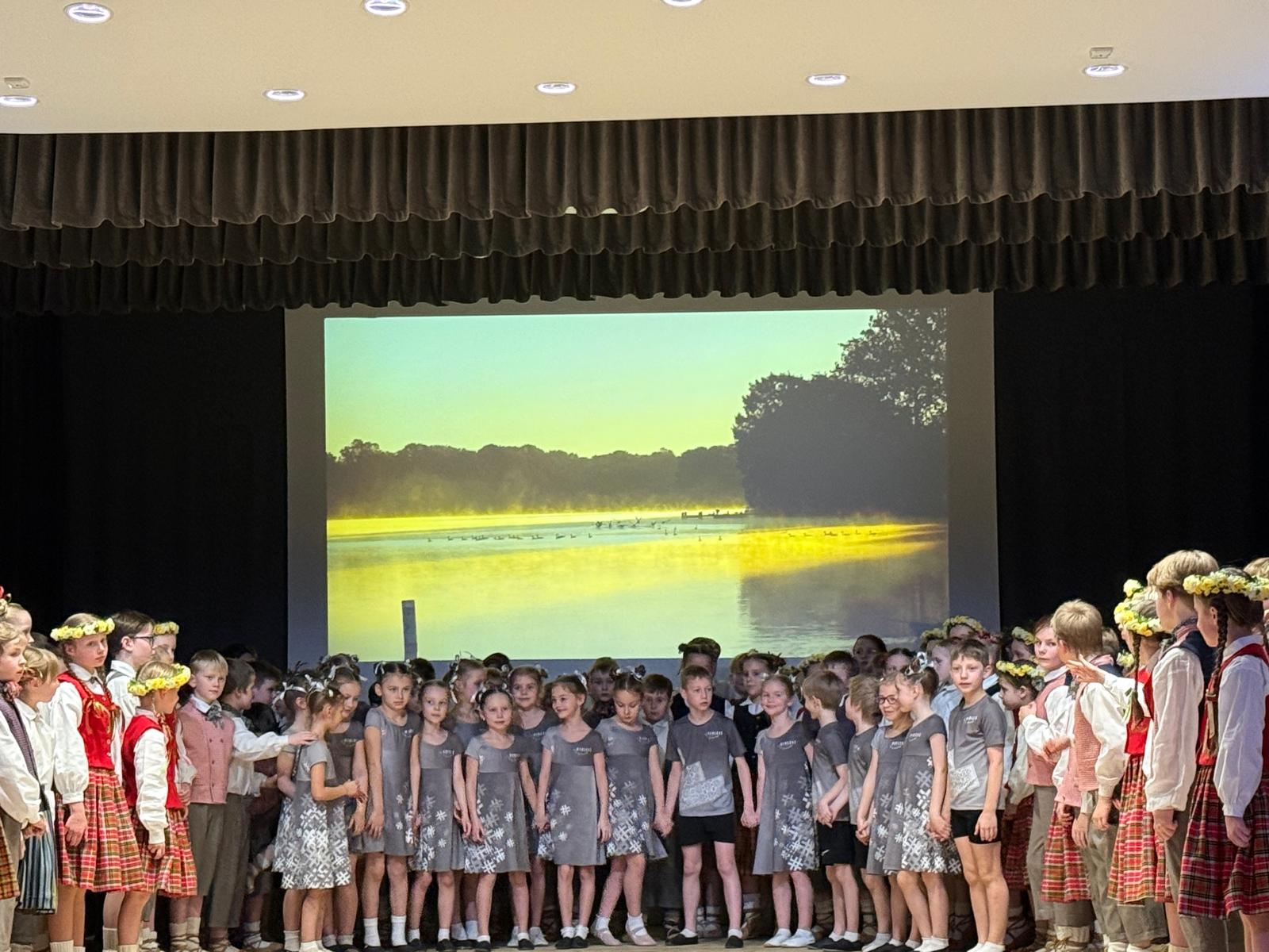 Pasākums bija sadalīts vairākos tematiskajos cēlienos – “Latvju raksti”, “Jūra”, “Mežs” un “Upe” – kuros dejotāji dažādās klašu grupās izpildīja dejas. Tēmas vienu pēc otras pieteica un arī “iedejoja” skolēnu padomes skolnieki: Līva Balgalve, Paula Sedola, Krišjānis Paegle un Rihards Dāvids Pipars. Paldies skolas absolventei Montai Grosbergai par “vīdžjošanu” – radošo ekrānu, kurā lielās tēmas un dejotāju sniegums tika papildināts ar dažādiem Latvijas dabas motīviem un dziesmu un deju svētku skatiem. Skanīgās balss īpašnieces Ingunas Rakules dziedājums “Sasala jūriņa un  “Skaista mana tēvu zeme”, Riharda Rudzīša klavieru pavadījumā, radīja emocionālu un skaistu koncerta papildinājumu deju starplaikos.
