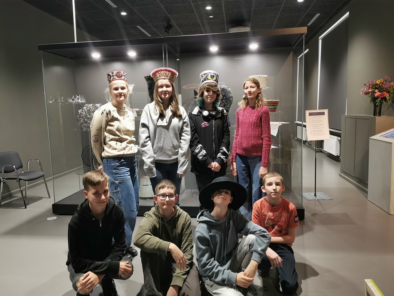 Pēc nodarbības kluba dalībnieki iepazinās ar muzeja patstāvīgo ekspozīciju, kā arī apmeklēja izstādi “Vainagošanās”, kas stāsta par vainagu nozīmi, attīstību un veidiem Latvijas teritorijā. Izstādē sevī apvieno gan arheoloģiskos, gan etnogrāfiskos, gan mūsdienās veidotus mākslinieciskus vainagus. Skolēnu entuziasms izzināt iepriecināja arī izstādes kuratori, kas piemeklēja papildus vainagus grupas foto uzņemšanai.