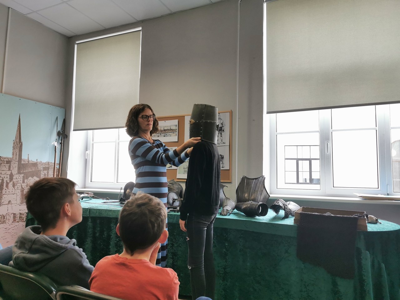 Nodarbības laikā, kluba dalībnieki uzzināja par to, kādi bruņinieki saimniekojuši Rīgā un Latvijas teritorijā, kur viņi ir dzīvojuši un ar ko nodarbojušies. Skolēni tika iepazīstināti ar bruņinieka apbruņojumu dažādos laika posmos, apbruņojuma specifiku un pielietojumu – sākot ar bruņu cepurēm un zobeniem, un beidzot ar arbaletiem un vairogiem. Skolēniem bija iespēja aprīkojumu arī aptaustīt un pielaikot – pat 15. un 16.gs. autentiskos zobenus -, kas noteikti bija skolēnu mīļākā daļa no nodarbības.