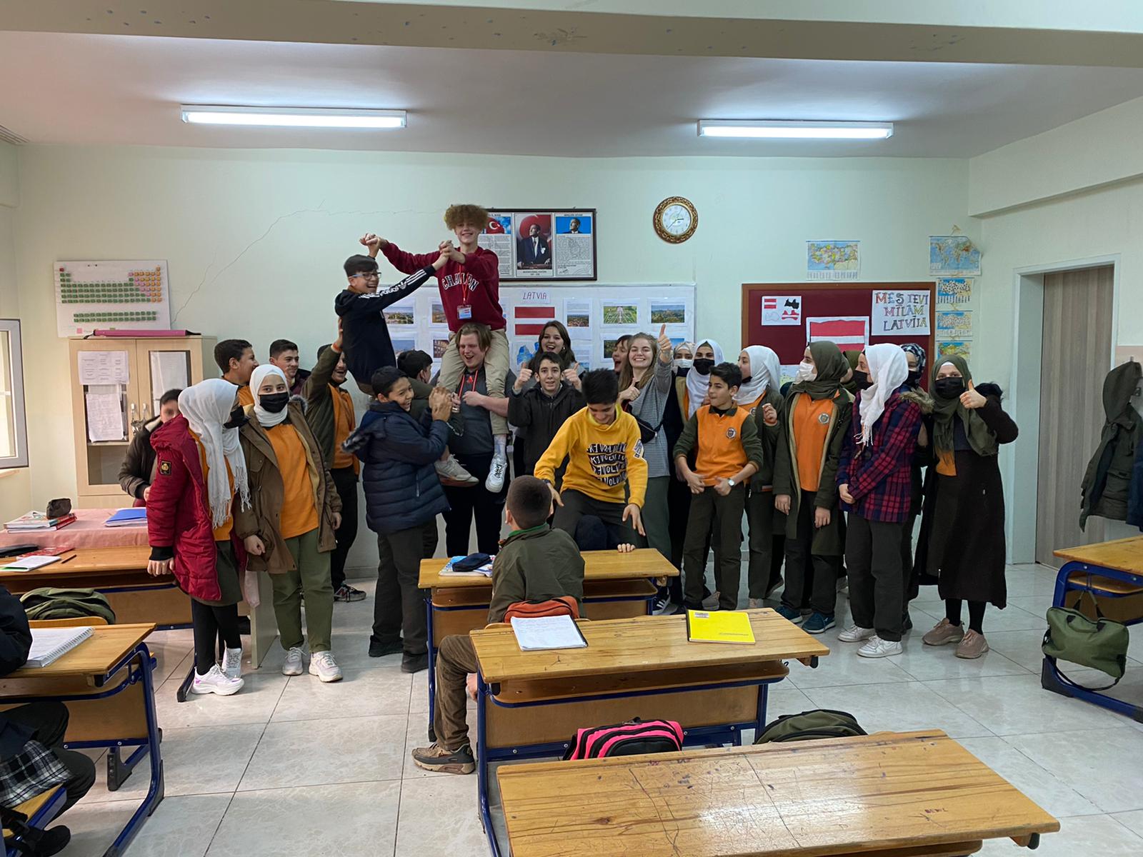 Katru rītu devāmies uz skolu, kur pavadījām 2-3 stundas, iepazīstoties ar Turcijas izglītības sistēmu. Tā bija neaizmirstama pieredze, jo iespēja pavadīt laiku citas kultūras bērnu vidū palīdzēja mums labāk izprast, ar kādām problēmām viņi sastopas, kas ir aktuāls un kāda ir viņu ikdiena un arī to cik ļoti mums jānovērtē mūsu ikdienas dzīve mājās- Latvijā. Viena no lietām, kas spēja pārsteigt un iedvesmot, bija cilvēki. Viņu dzīvesprieks, enerģija un laipnība mūs pavadīja visas nedēļas garumā. Lai gan bērni, kas mācījās skolā, pārsvarā bija jaunāki par mums, tas neliedza iegūtu jaunus draugus un izjust viņu velmi komunicēt. Skolas skolotāji bija ļoti sirsnīgi un viesmīlīgi, katru rītu cenšoties mūs iepriecināt uzsākot sarunu vai vienkārši apvaicājoties par to kā jūtamies. Vēl joprojām sazināmies ar skolas bērniem un viesģimenēm, jo cilvēki, kurus iepazinām, paliks atmiņā kā viena no projekta un dzīves sniegtajām vērtībām.