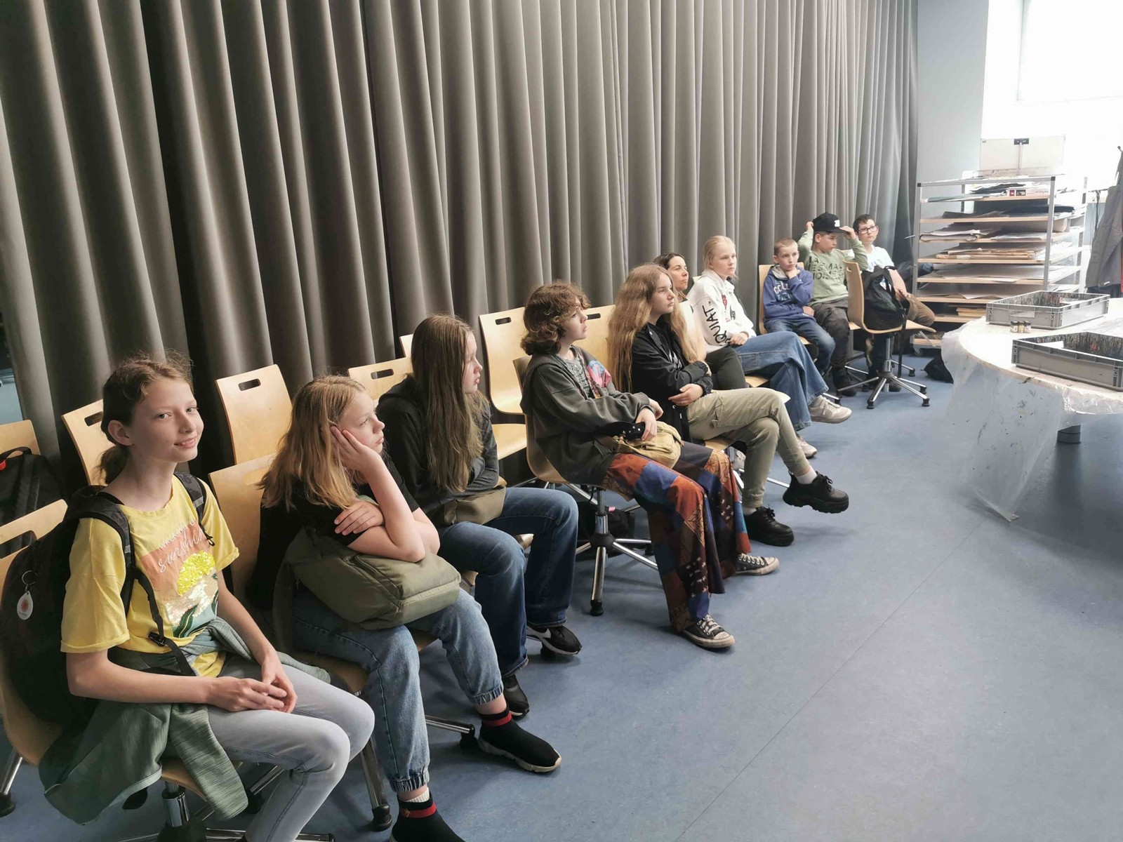 Marmorēšanas nodarbību gaidot, skolēni izmantoja iespēju apmeklēt nesen atklāto izstādi par Rīgas parkiem “No Arkādija līdz Marsam”, un izpētīt tajā esošos parku plānojumus, noklausīties video materiālu par parku tapšanu un aplūkot foto izstādi. Taču vislielāko popularitāti guva meditācija telpa, kas parkus un dabas zonas parādīja no mierīgāka, no pilsētas nošķirtā viedā.