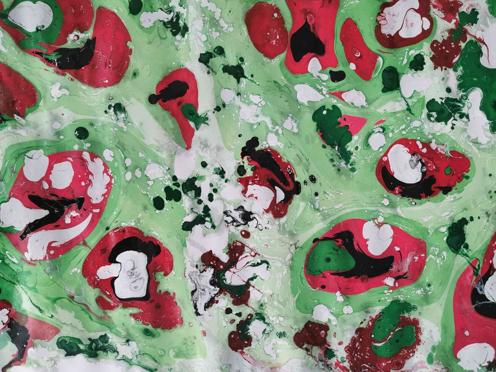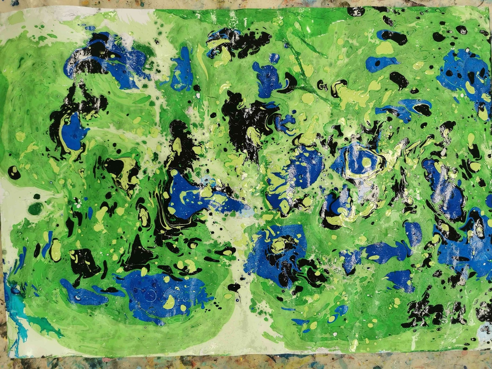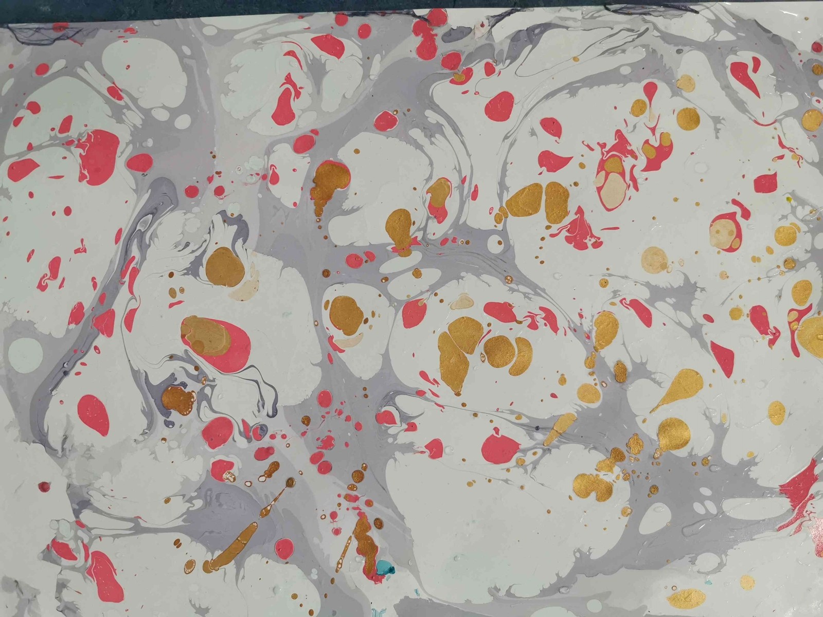 Pašā nodarbībā, skolēni apguva marmorēšanas prasmi. Ar īpašām krāsām tika veidoti raksti uz ūdens, tad tajos mērkts papīrs, iegūstot satriecošus, krāsainus un interesantus rakstus. Nodarbības gaitā skolēni uzzināja arī par marmorēšanas vēsturi un izcelsmi, kā arī par to, kā marmorētus darbus reiz izmantoja grāmatu iesiešanā. Šo domu turpinot, nākošajā nodarbībā skolēni arī mēģinās paši iesiet grāmatas, vākiem izmantojot savus krāšņos darbus.