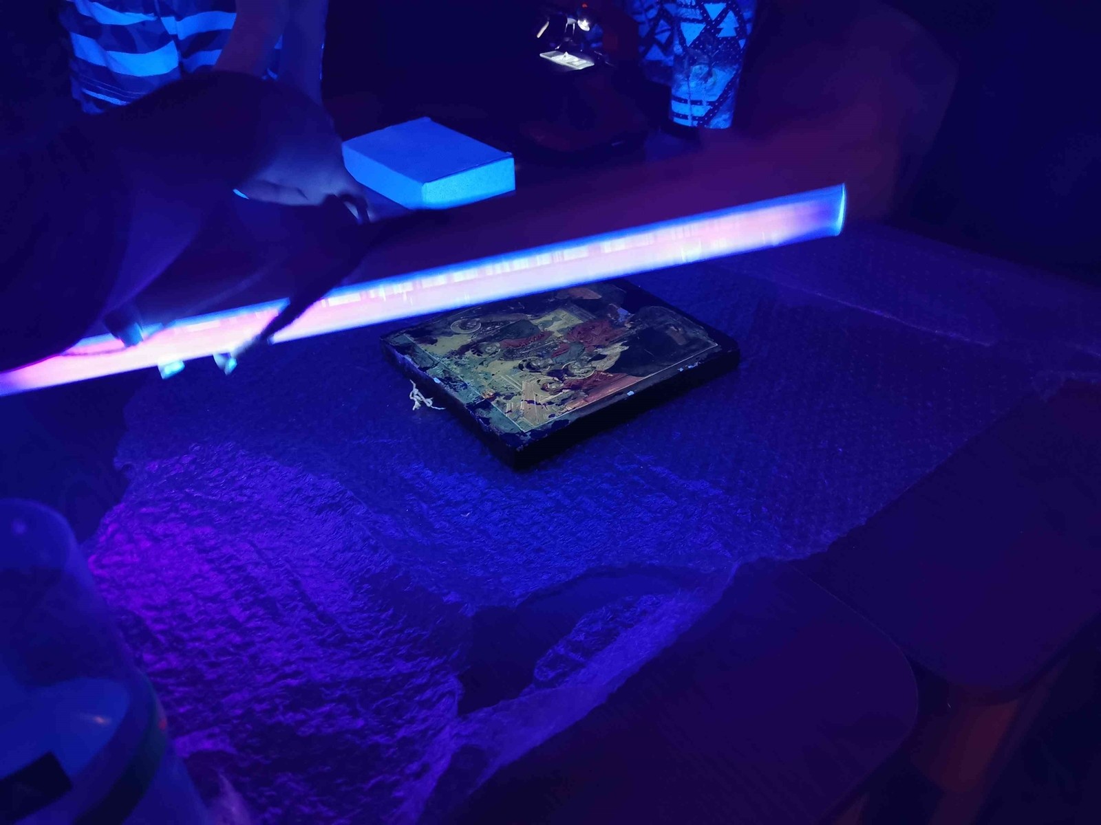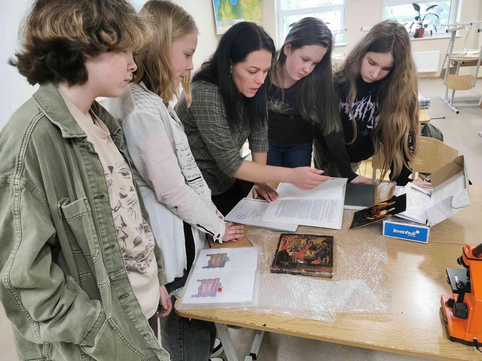 Nodarbības otrajā daļā, skolēniem tika dota iespēja aplūkot un iepazīt restauratora darbarīkus, to pielietojumu un arī iemēģināt dažu rīku izmantošanu. Skolēni varēja iemēģināt savu roku naglu vilkšanā no koka rāmjiem, mikroskopa izmantošanā, ultravioletās gaismas pielietošanā utt.