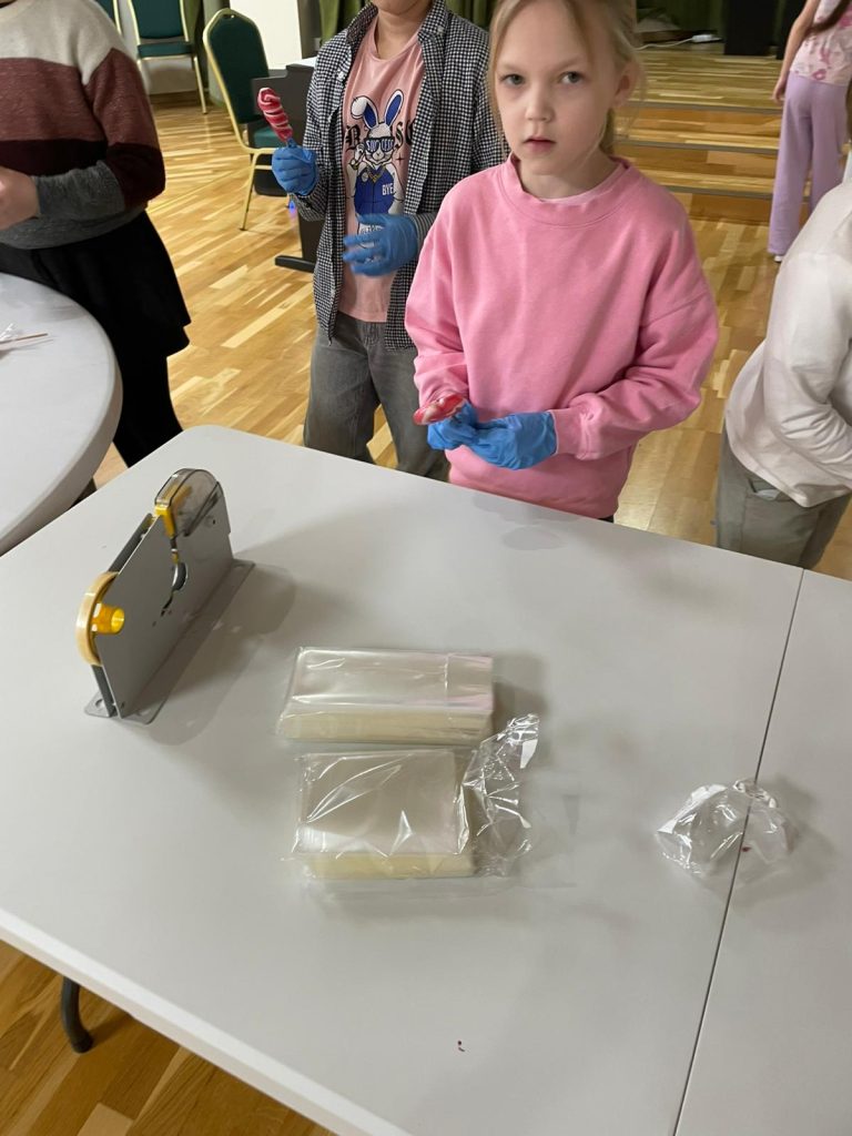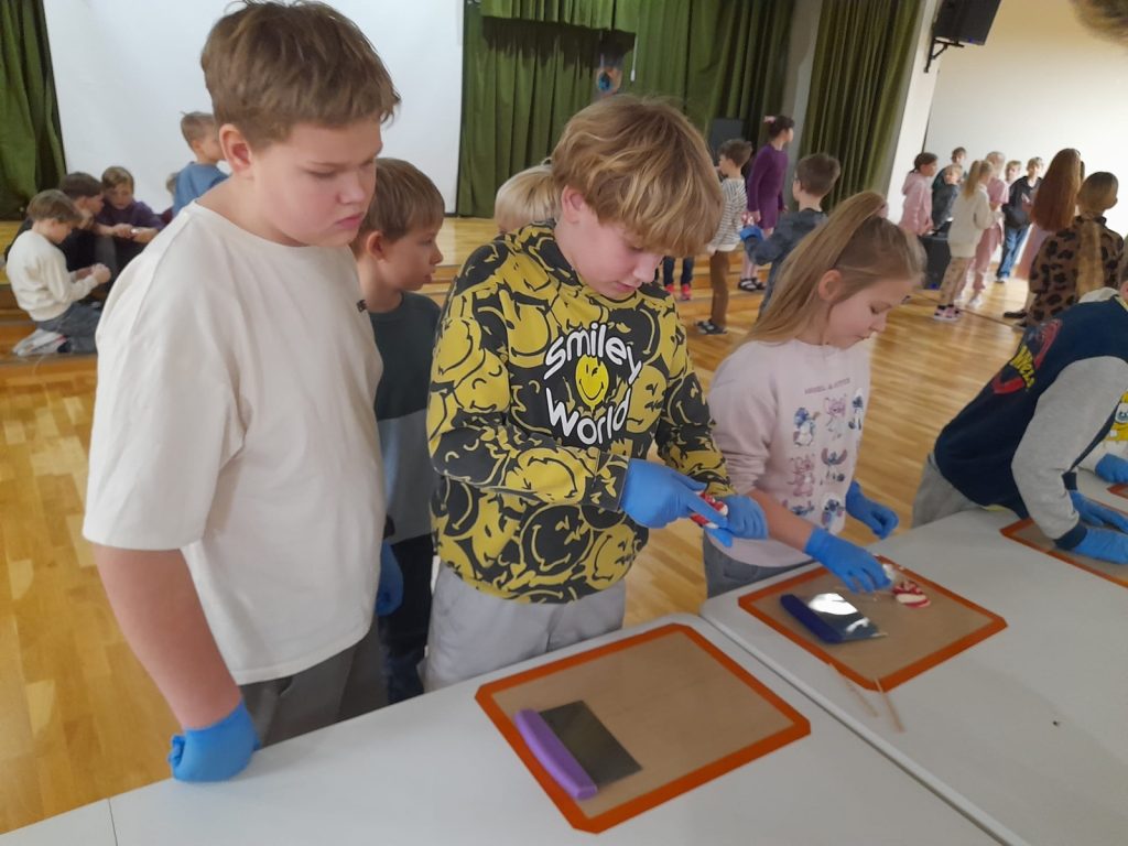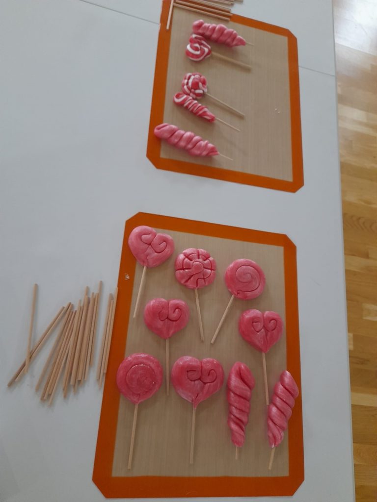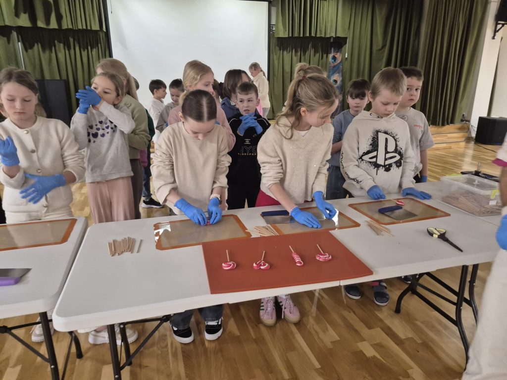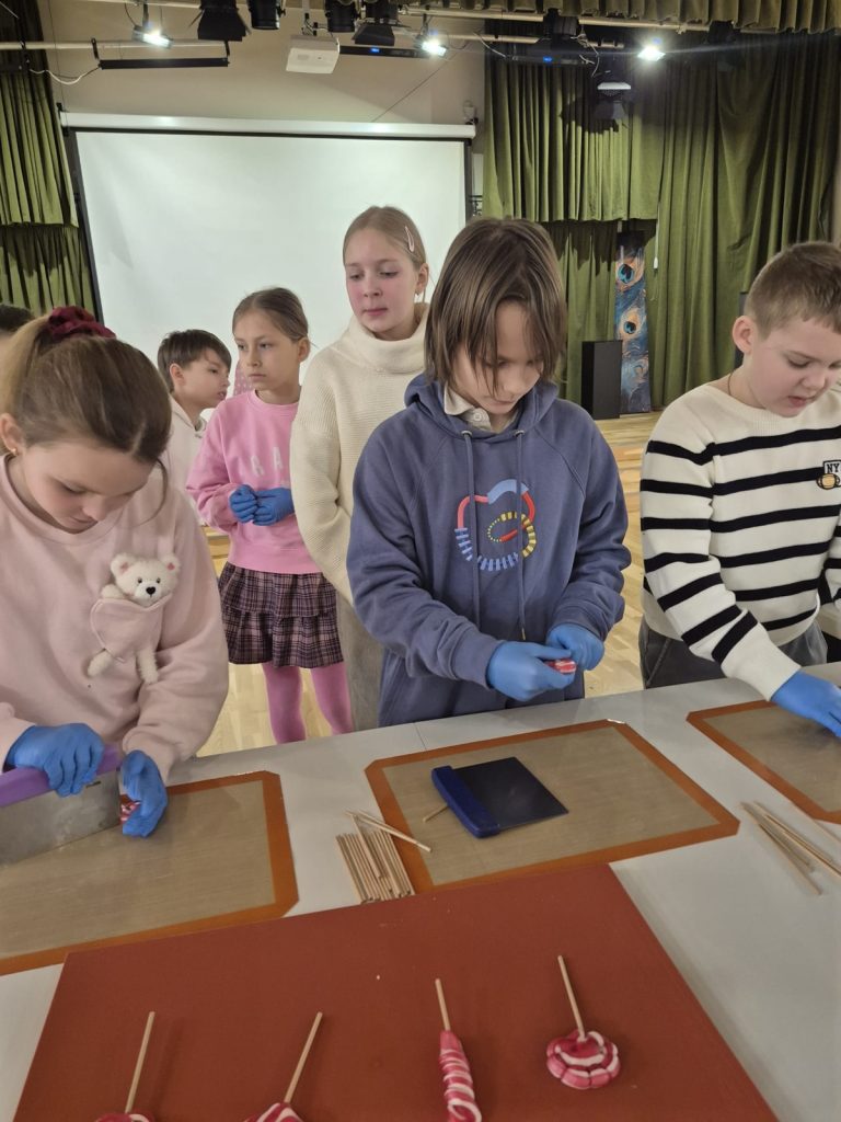 Skolēni veidoja dzērveņu garšas karameles dažādās formās – tvistera, puķītēs, sirsniņās un aplīšos. Darbs prasīja rūpību un pacietību, taču visi ar to lieliski tika galā. Klasesbiedri cits citam palīdzēja un ar prieku rādīja savus skaistos darbiņus.