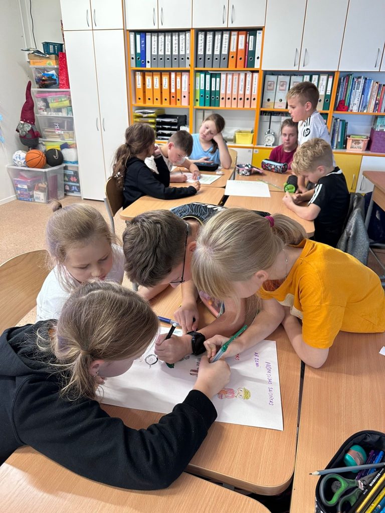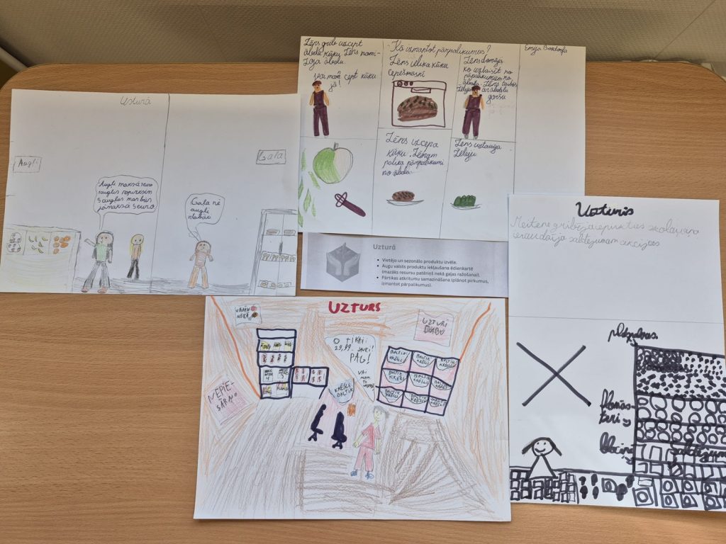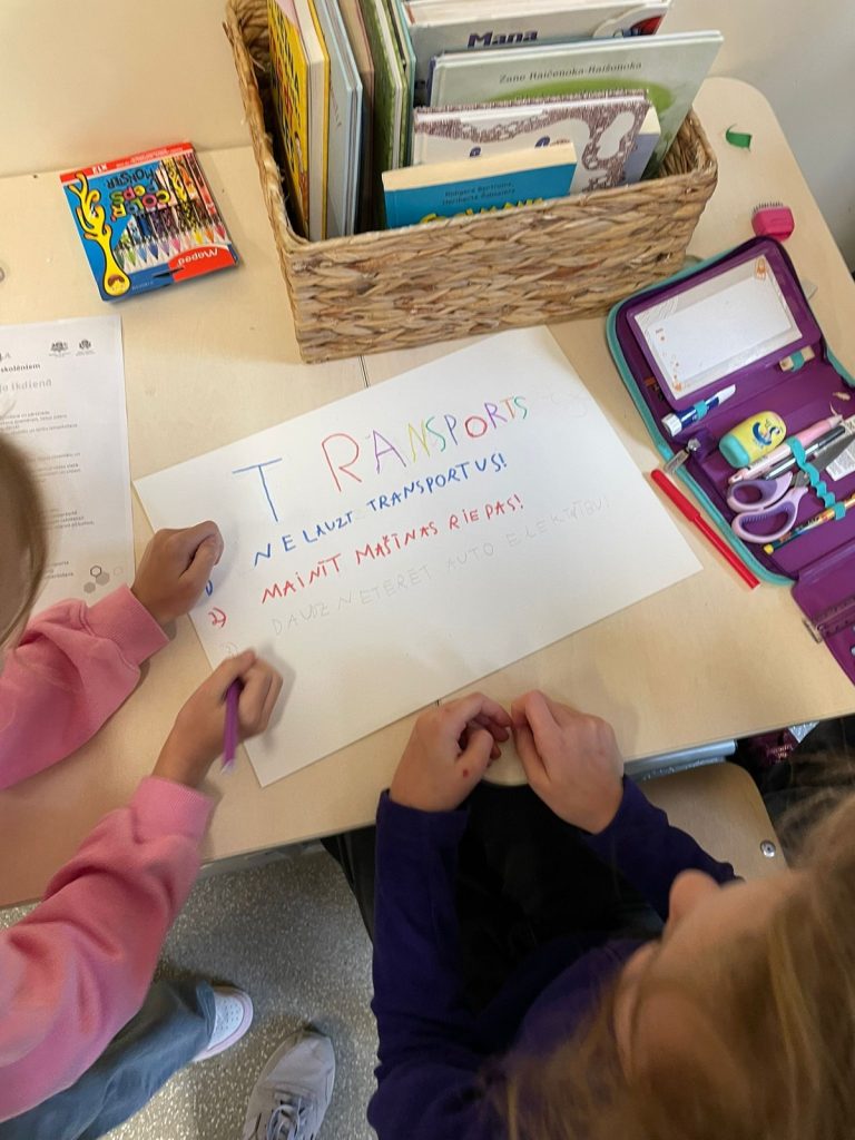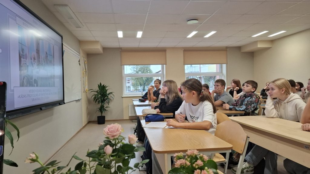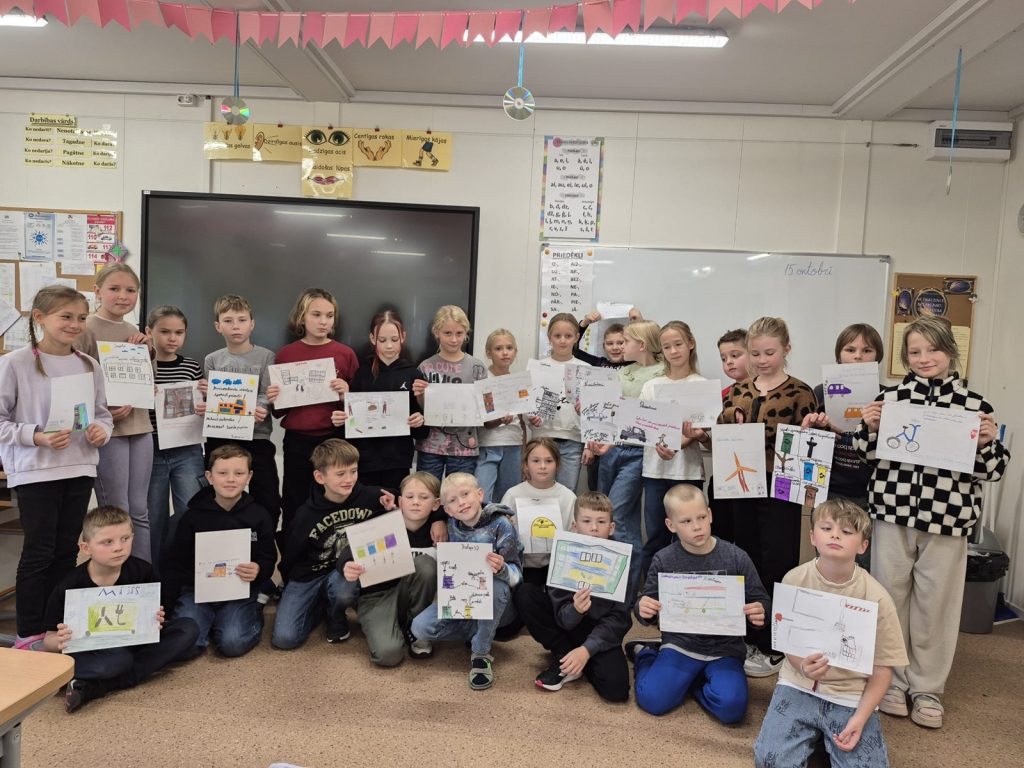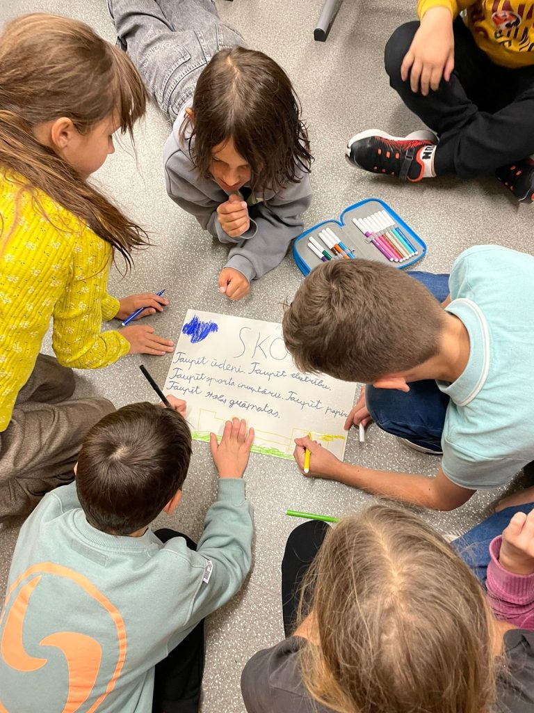 3.a klases skolēni karjeras nedēļas “Zaļā karjera Tavai nākotnei” ietvaros veidoja vizuālo materiālu “Kādas profesijas ir saistītas ar gaisu, ūdeni, zemi, palīdzību un atbalstu citiem”. Skolēni ar interesi un aizrautību strādāja grupās. Patika, ka vajadzēja domāt un sadarboties.