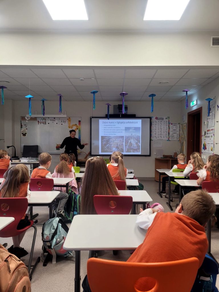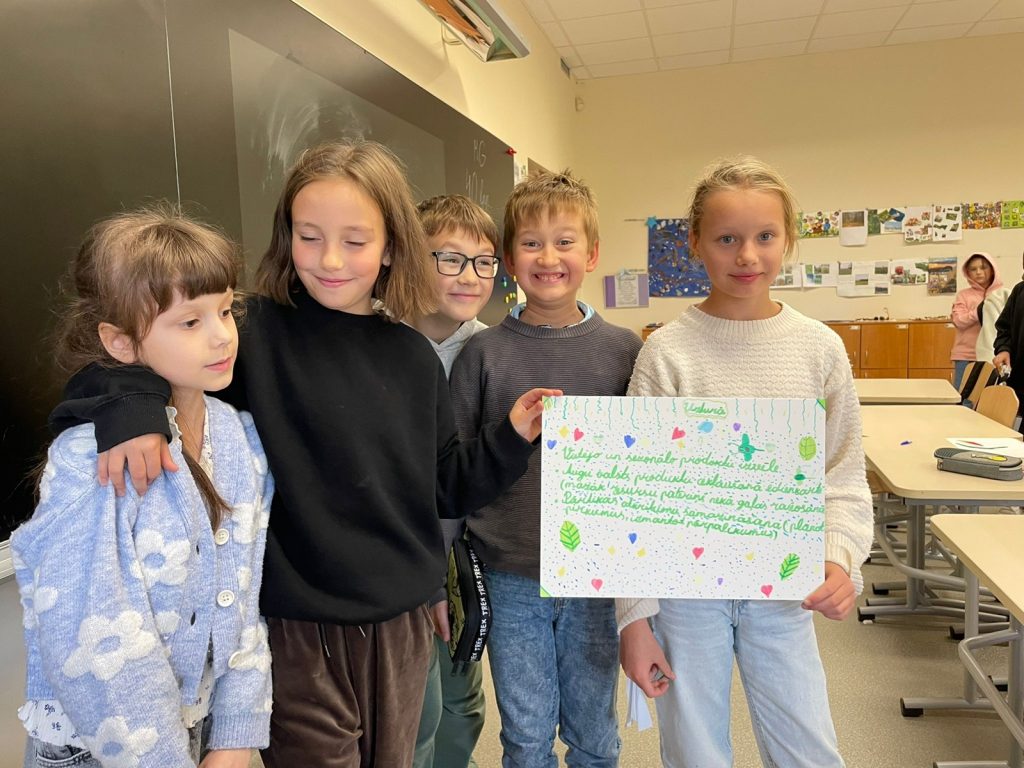 Stundas noslēgumā notika kopīga refleksija par to, kā katrs var ikdienā rīkoties videi draudzīgāk. Rezultātā skolēni izprata ilgtspējas būtību, ieguva zināšanas par zaļajām profesijām un attīstīja sadarbības, domāšanas un prezentēšanas prasmes.