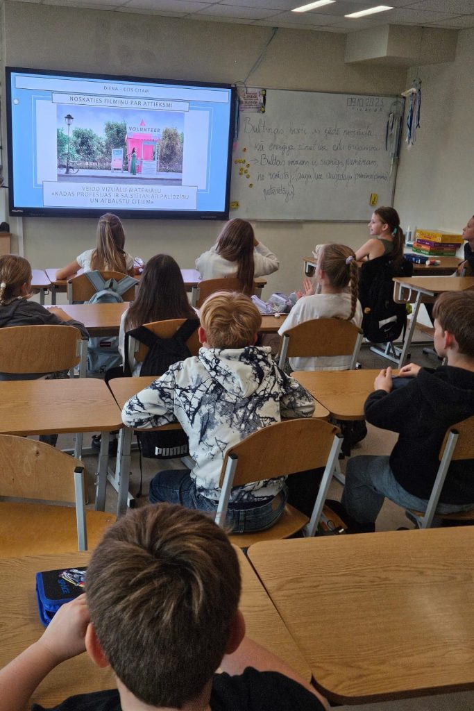7.c klasē stunda sākās ar īsu ievadu par ilgtspējas jēdzienu un tā nozīmi mūsdienu pasaulē. Skolēni grupās apsprieda un pierakstīja zaļās profesijas, kuras viņi zina vai varētu būt nākotnē. Pēc tam katra grupa prezentēja savas idejas klasei. Praktiskajā daļā skolēni pildīja uzdevumu “Zaļā misija”, kur viņiem bija jāsaista konkrētas vides problēmas ar atbilstošām zaļajām profesijām. Skolēni saņēma situāciju kartītes (piemēram: pilsētā vajag samazināt atkritumus vai skolā grib ieviest enerģijas taupīšanu) un jāizdomā, kāda zaļā profesija varētu palīdzēt šo problēmu atrisināt.