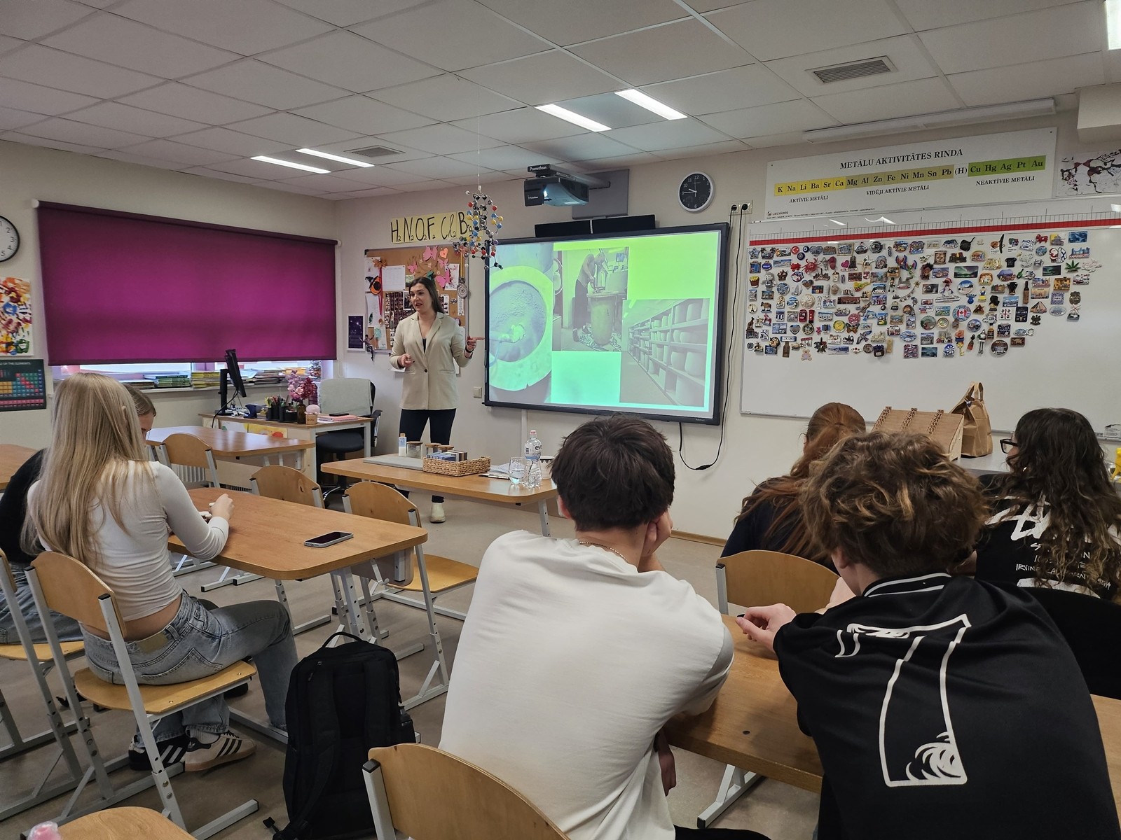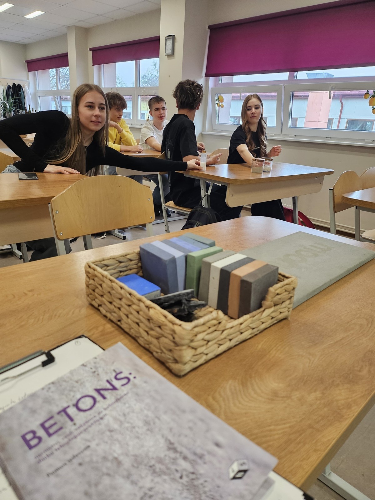 Inga Meikša skolēniem novadīja ķīmijas stundu aktualizējot zināšanas par betona fizikālajām un ķīmiskajām īpašībām, kā arī izmantošanu.