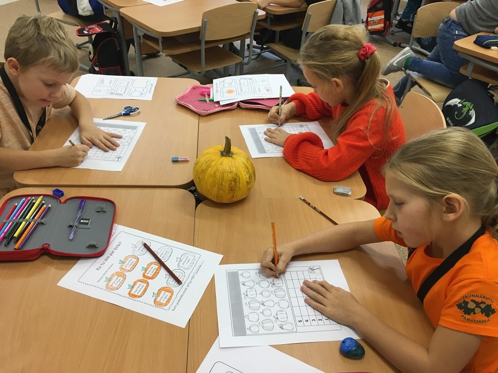 31. oktobris 1.a un 1.c klasei bija pārsteigumiem pilna un neparasta diena. Ķirbis bija palīgs, lai apgūtu dažādas prasmes latviešu valodā, matemātikā u.c. mācību priekšmetos. Šajā dienā caurviju prasmes īstenojām, izvēloties šo veselīgo rudens velti. Ar neierastiem paņēmieniem skolēni iepazina un izpētīja ķirbjus. Skolēni, visas dienas laikā, darbojoties grupās, garšoja, smaržoja, svēra, mērīja, salīdzināja, zīmēja, veidoja diagrammas un citādi veica izpētes uzdevumus.