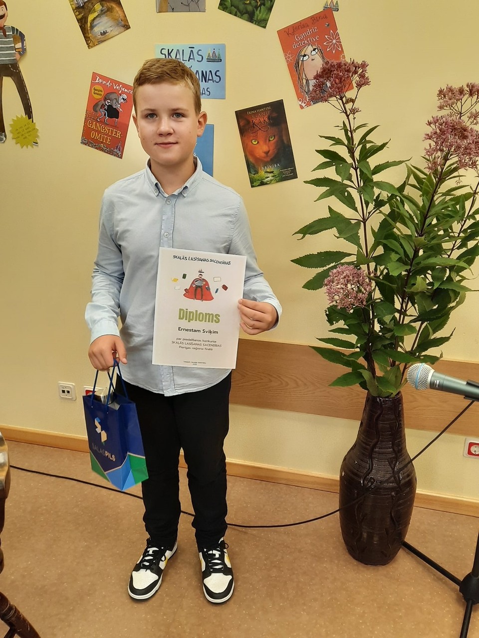 Paldies Ernestam par cīņas sparu, veiksmīgo piedalīšanos iepriekšējās konkursa kārtās, paldies Ernesta latviešu valodas skolotājai Simonai Neifaltei un Ernesta vecākiem par lielo atbalstu sagatavošanās posmā! Lai lasītprieks turpina būt klātesošs arī turpmāk!