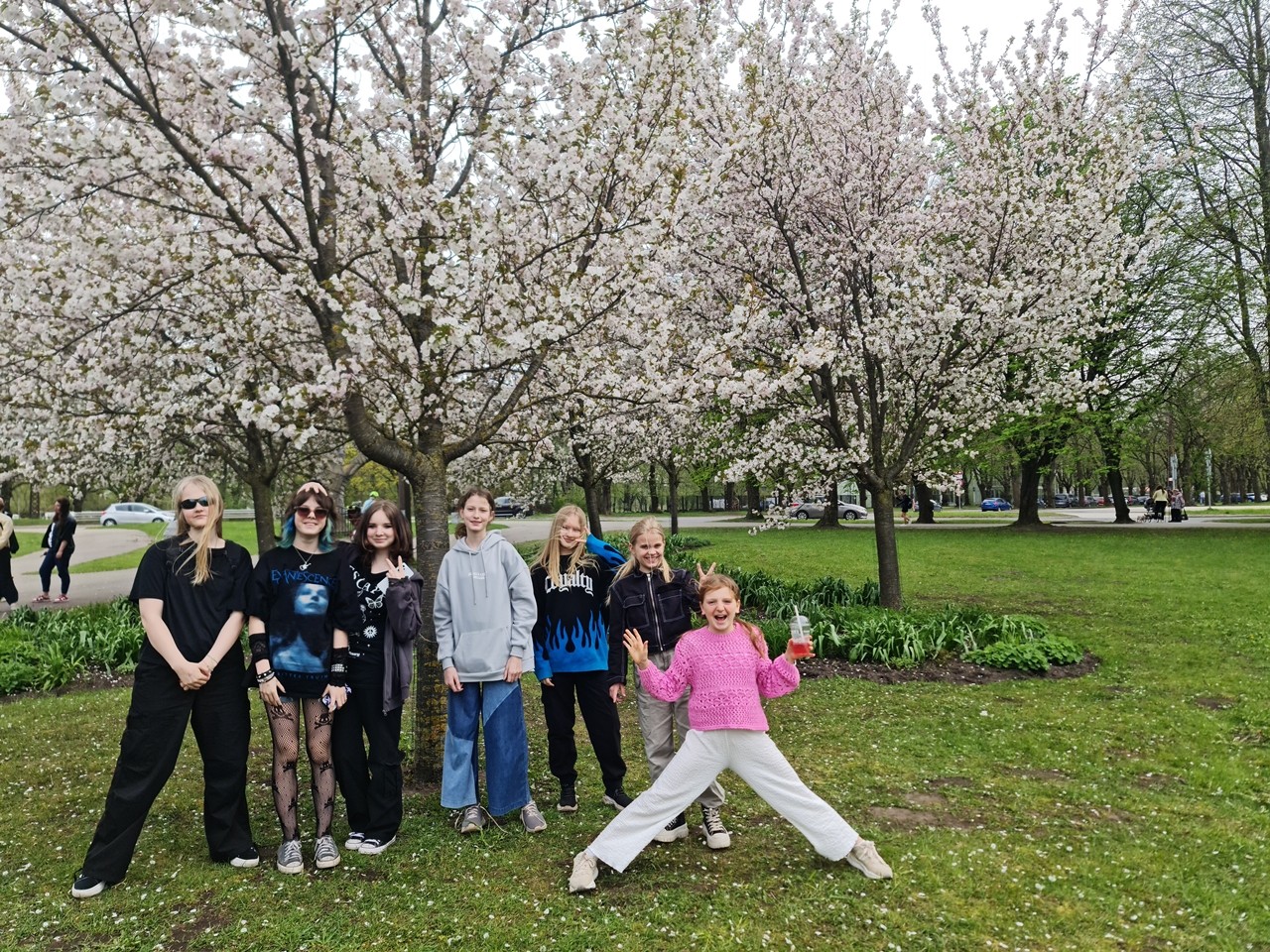 Ekskursija sākās ar pusdienām pirms došanās uz parku. Pašā parkā pirmais uzdevums – skaistas fotogrāfijas ar ziedošajiem ķiršu kokiem. Turpinājumā pikniks, kuram fonā runājām par ķiršu ziediem, klausījāmies korejiešu popmūziku pavasara tematikā, spēlējām dažas korejiešu spēles kā Nunči spēle (눈치 게임), Zaķītis – burkāns spēle (바니바니~ 바니바니~ 당근! 당근!) un Baskin Robins 31 spēle (바스킨 로빈스 31), kā arī ugunsbumbu, badmintonu, meitenes vija vainagus no pienenēm, meklēja “Laimīgo āboliņu” un arī atrada. Dažas no skolniecēm ziedošos ķiršu kokus “벚꽃” savām acīm redzēja pirmo reizi. Tieši tāpat arī skolotāja aicina visus aizdoties uz Rīgu un savām acīm piedzīvot pavasara skaistumu, kamēr vēl ķiršu koki zied!
