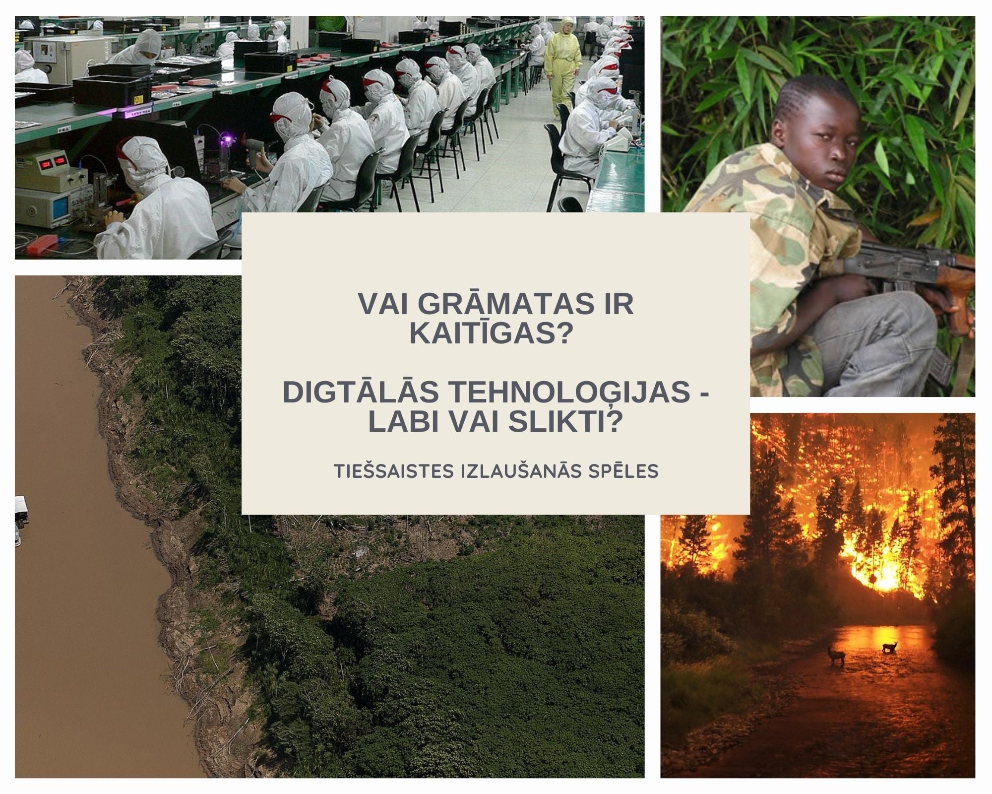 Mūsu dzīvē jau kādu laiku līdzās pastāv drukātās grāmatas un dažādas digitālās tehnoloģijas. Izlaušanās spēlēs “Vai grāmatas ir kaitīgas?” un “Digitālās tehnoloģijas – labi vai slikti?” vari noskaidrot, cik ilgtspējīga ir šo preču ražošana un izmantošana un kas notiek, kad grāmatas un digitālās tehnoloģijas savu laiku nokalpojušas. Izaušanās spēlēs grāmatu un digitālo tehnoloģiju dzīves ceļš skatīts saistībā ar ANO ilgtspējīgas attīstības mērķiem, spēles liek aizdomāties par ikdienas patēriņu.. Izlaušanās istaba tapusi sadarbībā ar Izglītības iniciatīvu centru projekta “Bridge 47” ietvaros.