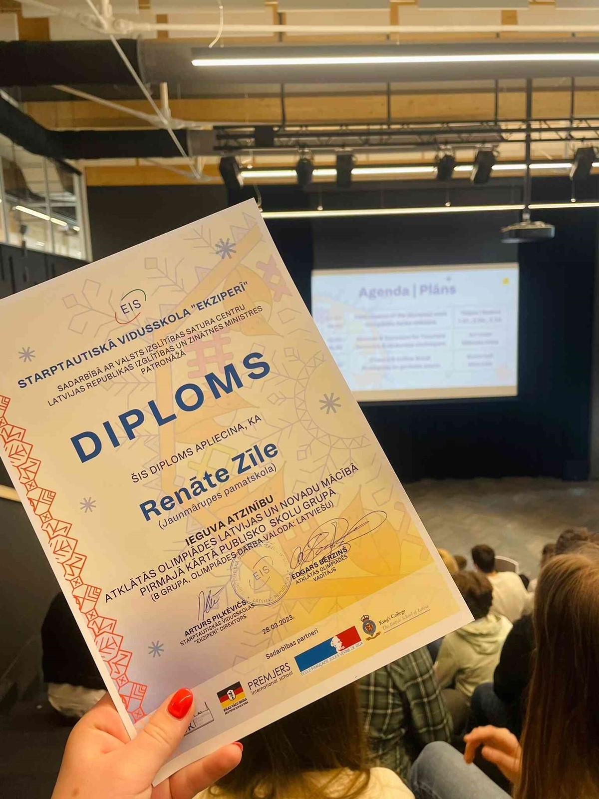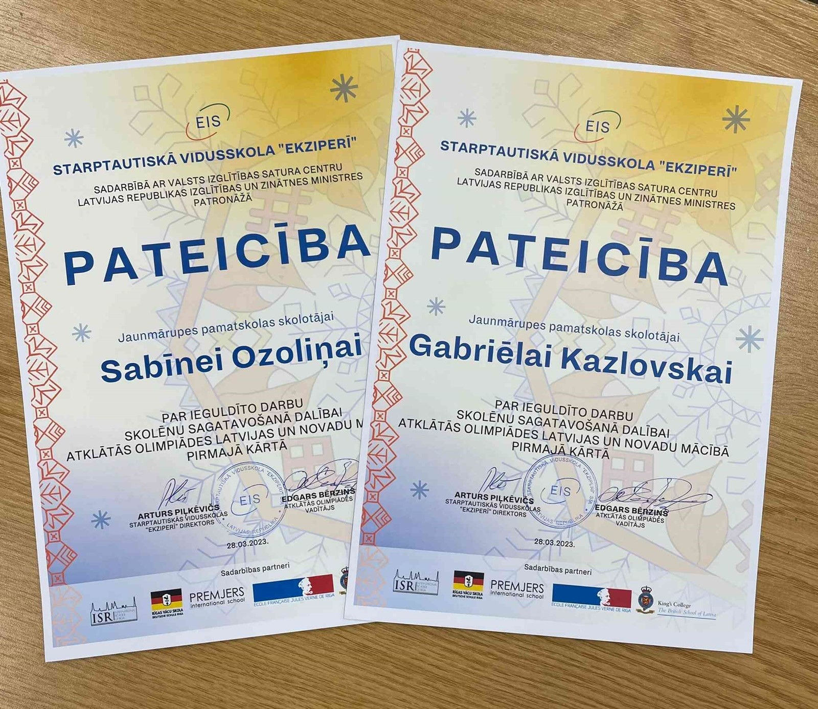 2023.gada 28.martā, Jaunmārupes pamatskolas skolotāja Gabriēla Kazlovska un 8.b klases skolēni Renāte Zīle un Rihards Beļuns, devās uz starptautisko vidusskolu “Ekziperī”. Skolēni piedalījās Latvijas un novadu mācības atklātās olimpiādes 2.kārtā jeb finālā.