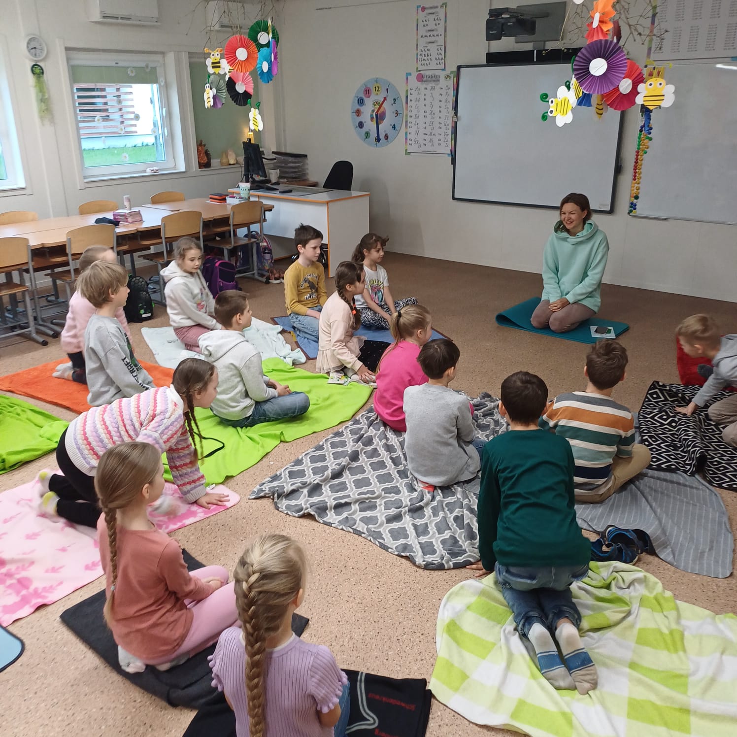 Stundas laikā bērniem bija iespēja ne tikai klausīties, bet arī aktīvi iesaistīties. Līvas mamma iepazīstināja skolēnus ar divām pašregulācijas tehnikām, kas palīdz nomierināties un atgūt līdzsvaru stresa brīžos. Skolēni ar interesi izmēģināja šīs vienkāršās, bet efektīvās metodes.