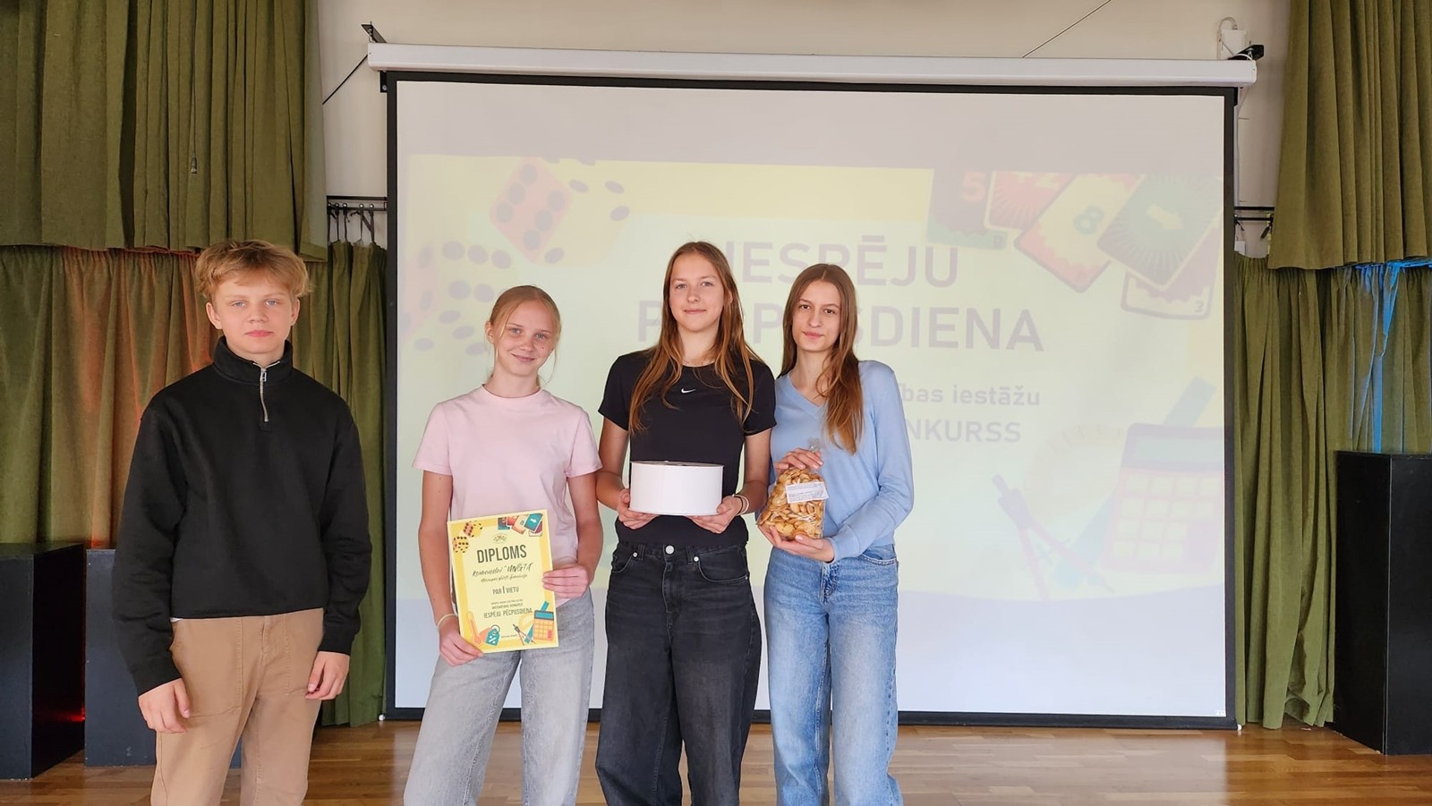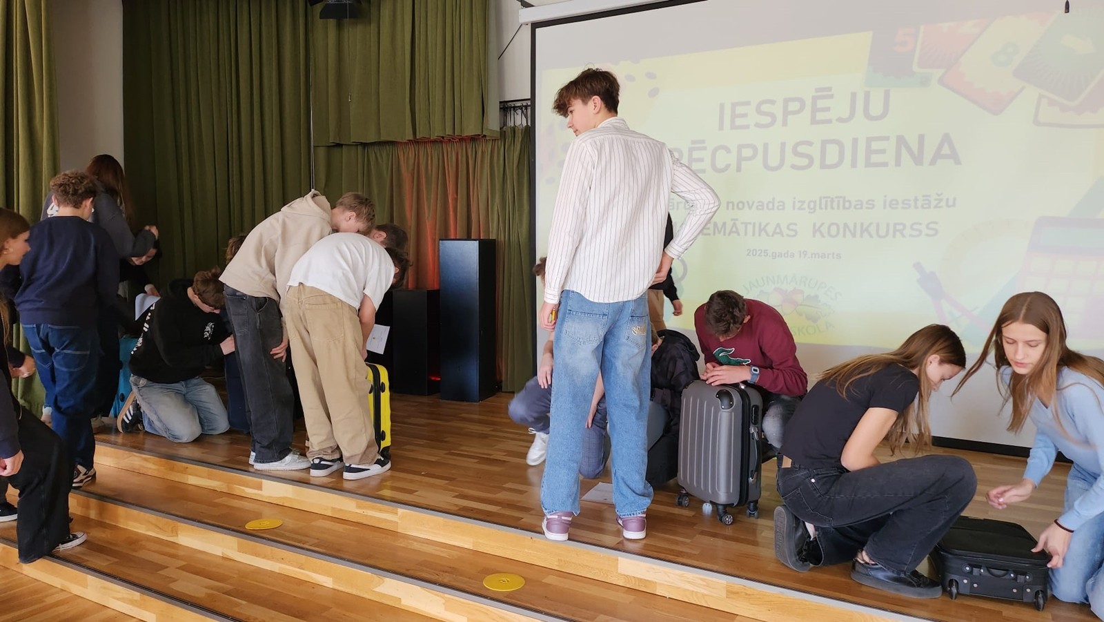 Skolēniem bija jāuzmin skaitļu kombinācija, lai atvērtu “dārgumu lādi”. Bija jāspēlē veiksmes spēle. Savā starpā komandas noskaidroja ašāko kombinatoriķi. Savukārt komandas kapteiņi sacentās savā starpā un risināja papilduzdevumu, kurš komandai deva papildus punktus.