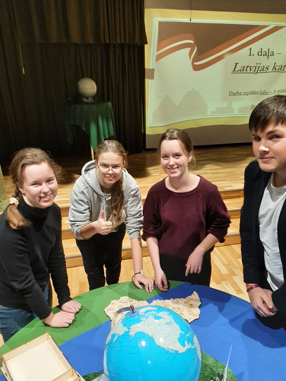 Skolēni grupās risināja uzdevumus par Latvijas ģeoloģiju un demogrāfiju, klimatu, Latvijas karti, strādāja ar atlanta kartēm un atpazina Latvijas pilsētas pēc dotajiem attēliem.