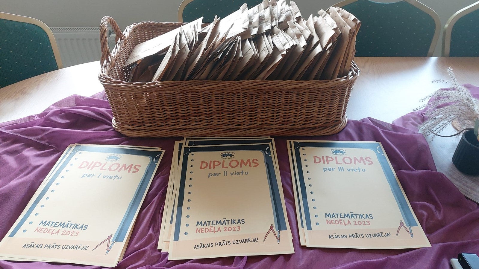 Paldies visiem skolotājiem par uzdevumu sagatavošanu, atbilžu ievākšanu un rezultātu apkopošanu! Paldies visiem aktīvajiem un centīgajiem matemātikas uzdevumu risinātājiem! Matemātikas nedēļas dalībniekiem tika izsniegti apbalvojuma diplomi un dāvaniņas!