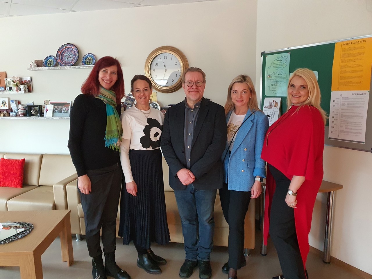 Erasmus+ projekta ietvaros 23.februārī mūsu skolā viesojās trīs skolotāji no Somijas. Somijas viesus uzņēma angļu valodas skolotāja Daina Spilberga, direktores vietnieces Laura Buravcova un Ilze Graudiņa. Kopējās sarunās dalījāmies pieredzē par izglītības sistēmu Latvijā un Somijā, skolu aprīkojumu, izglītības programmām un skolēnu sasniegumiem. Viesi izstaigāja skolu, aplūkoja mācību kabinetus, piedalījās atklātajā angļu valodas stundā. Vizītes noslēgumā tika pārrunātas sadarbības iespējas, viesi atzinīgi novērtēja gūtos iespaidus un pieredzi.