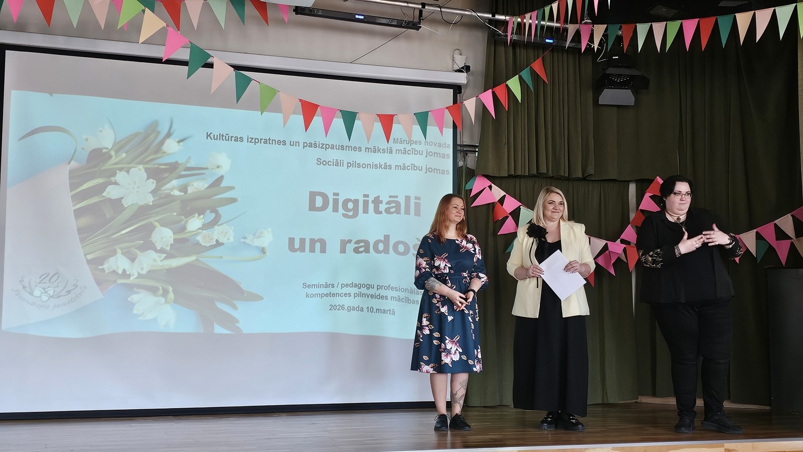 Izsakām pateicību mācību jomu koordinatorēm Ilzei Graudiņai, Jolantai Grosbergai-Gernerei un Sabīnei Ozoliņai par semināra organizēšanu un ieguldījumu pedagogu profesionālās kopienas stiprināšanā.