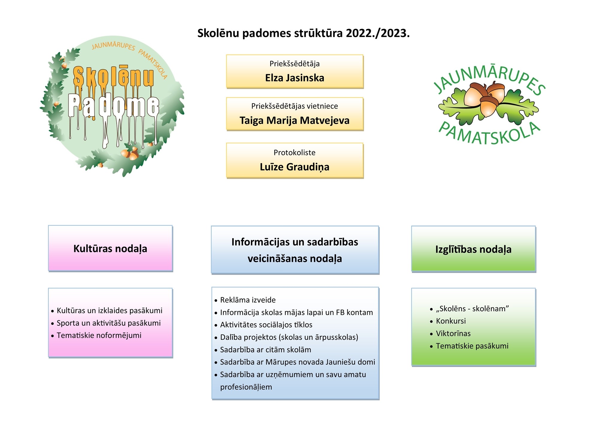 Skolēnu padome – skolēni, kuri vēlas popularizēt skolas tēlu un piepildīt ikdienu ar vairāk pārsteigumiem un prieka.