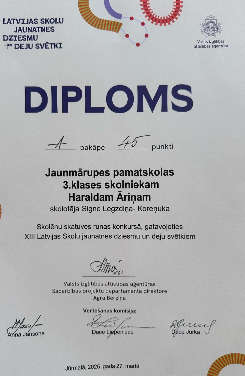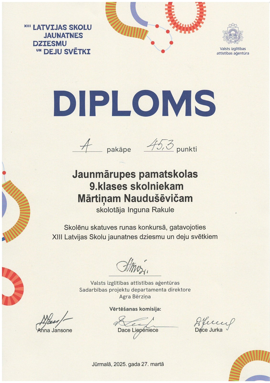 Ļoti lepojamies ar puišu rezultātiem! Mārtiņš un Haralds ieguva augstākās pakāpes diplomu, Valters – 1.pakāpes diplomu.