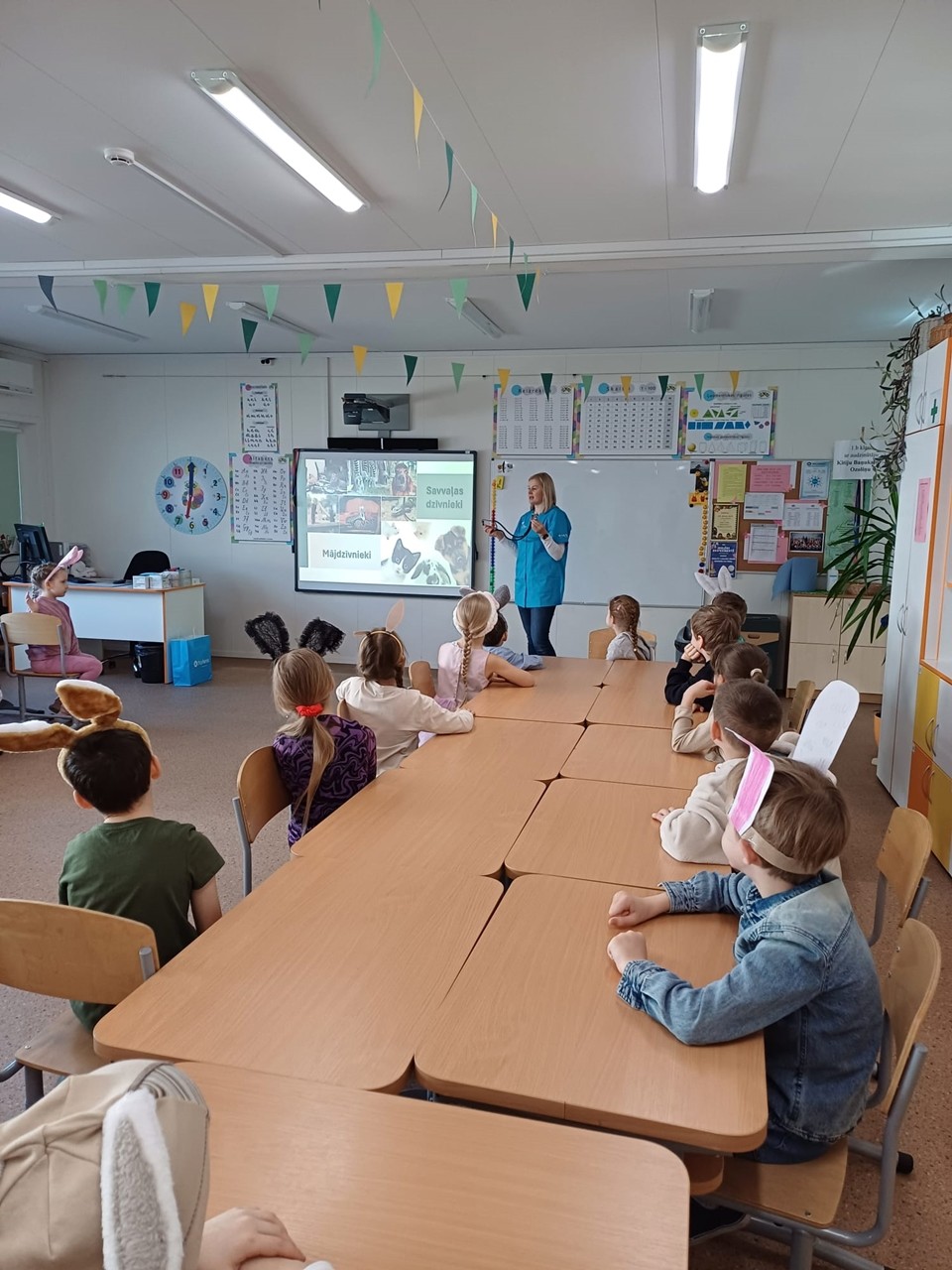Ceturtdienas rīts 1.b klasei iesākās neierasti un aizraujoši – pie viņiem ciemos bija ieradusies Olivera mamma, kura ikdienā strādā kā veterinārārste. Šī bija lieliska iespēja bērniem uzzināt par šo svarīgo profesiju no cilvēka, kurš to veic ar aizrautību un mīlestību.