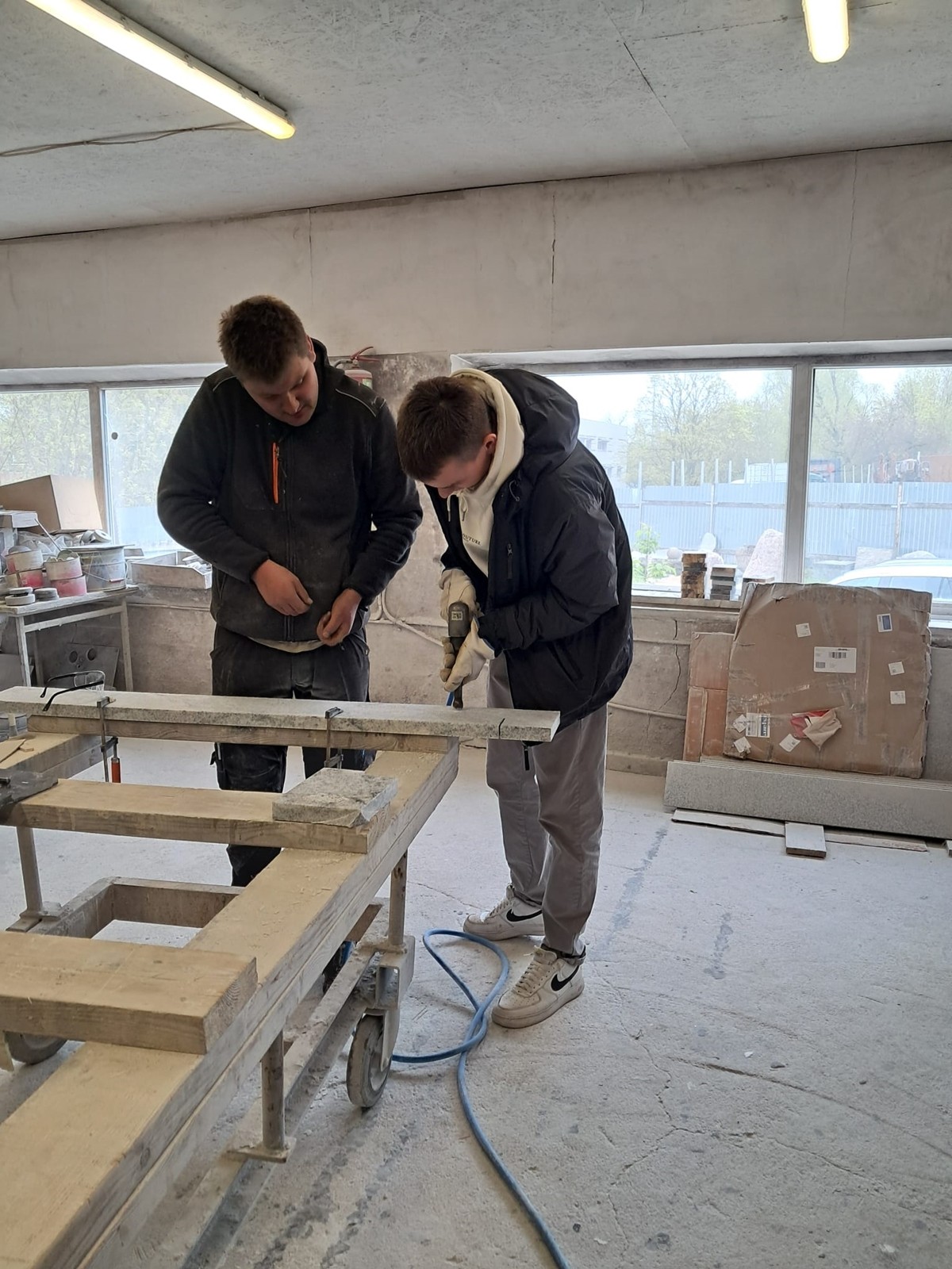 Uzņēmuma darbinieki laipni uzņēma viesus, dalījās ar profesionālajiem stāstiem un demonstrēja modernās akmens apstrādes tehnikas. Skolēniem bija iespēja ne tikai vērot, bet arī pašiem praktiski izmēģināt akmens kalšanas paņēmienus, kā arī tuvplānā apskatīt un aptaustīt dažādus no dabīgā akmens izgatavotus produktus.
