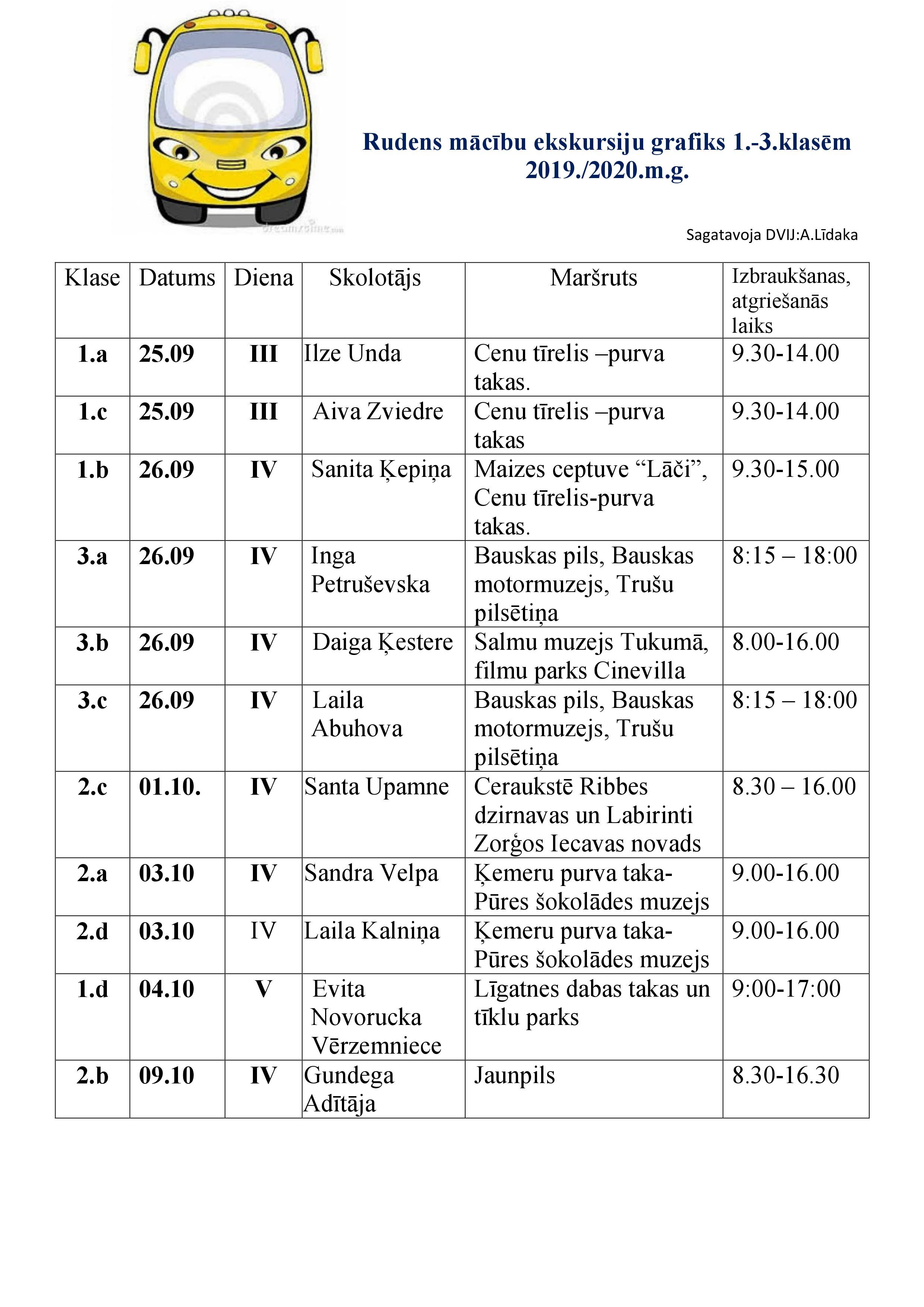 Rudens ekskursiju grafiks 1. – 3.klasēm