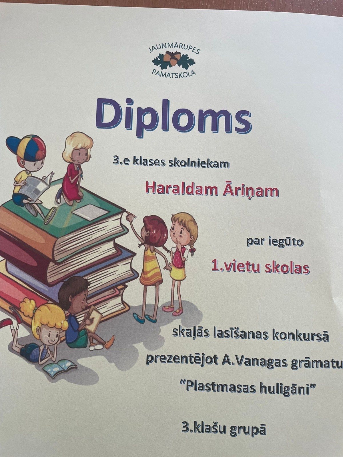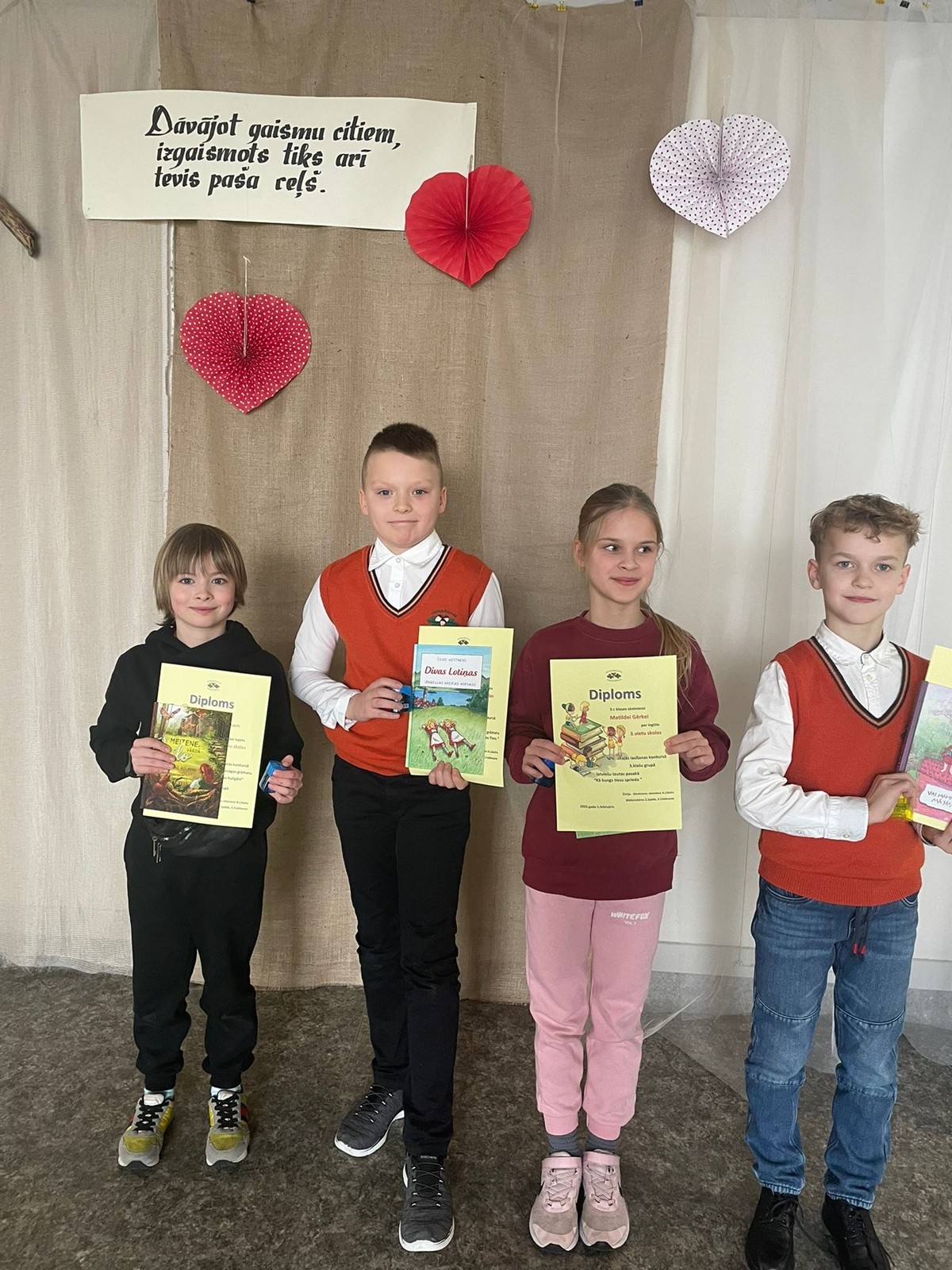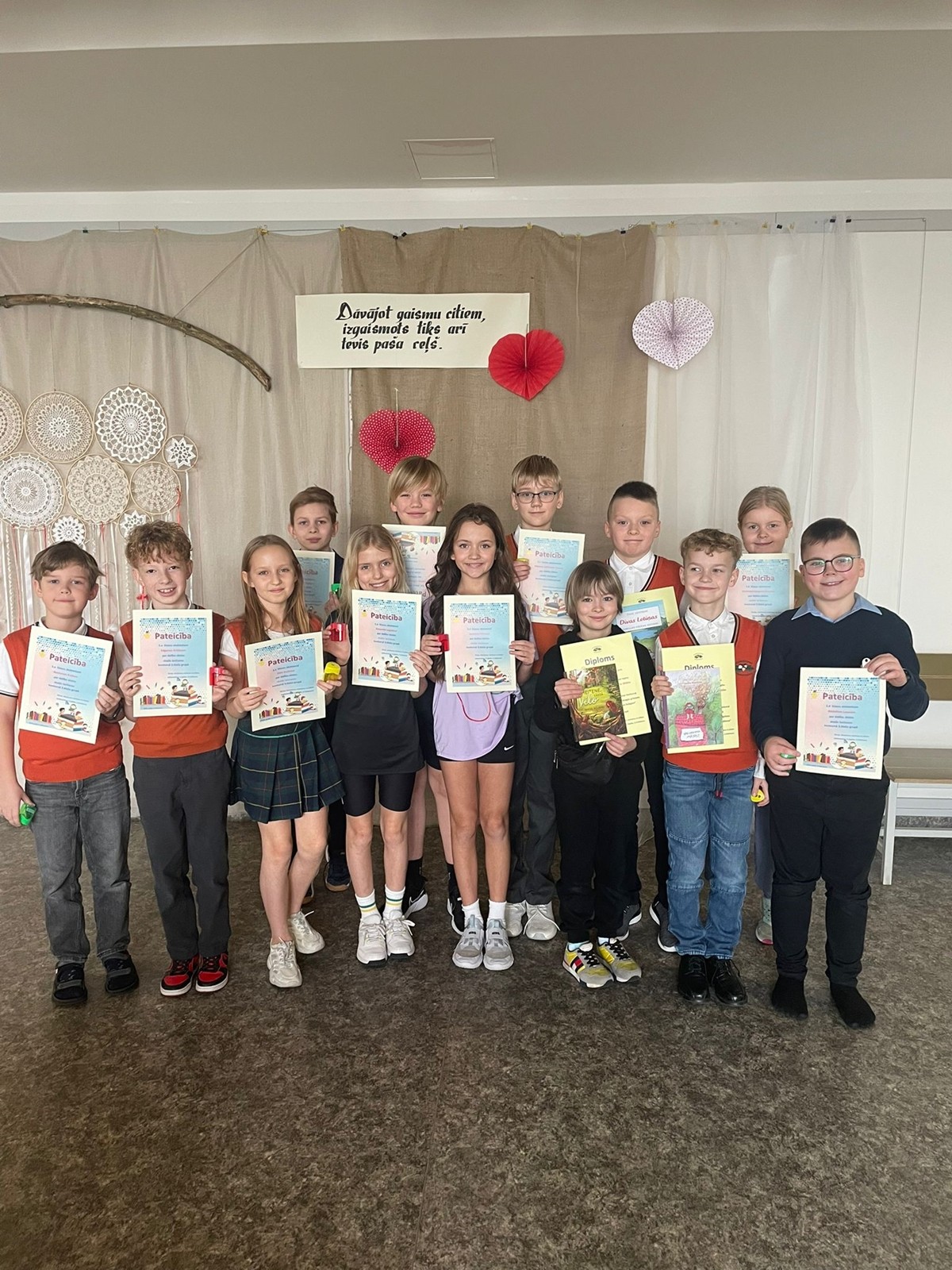 Labākie lasītāji tika apbalvoti ar diplomiem, pateicībām un balviņām. Pirmā vieta Haraldam Āriņam no 3.e klases, otro vietu ieguva Gustavs Millers no 3.b klases , trešā vieta Matildei Gērkei no 3.c un Valteram Utinānam no 3. e klases. Paldies visiem par sadarbību, atsaucību un dalību konkursā!